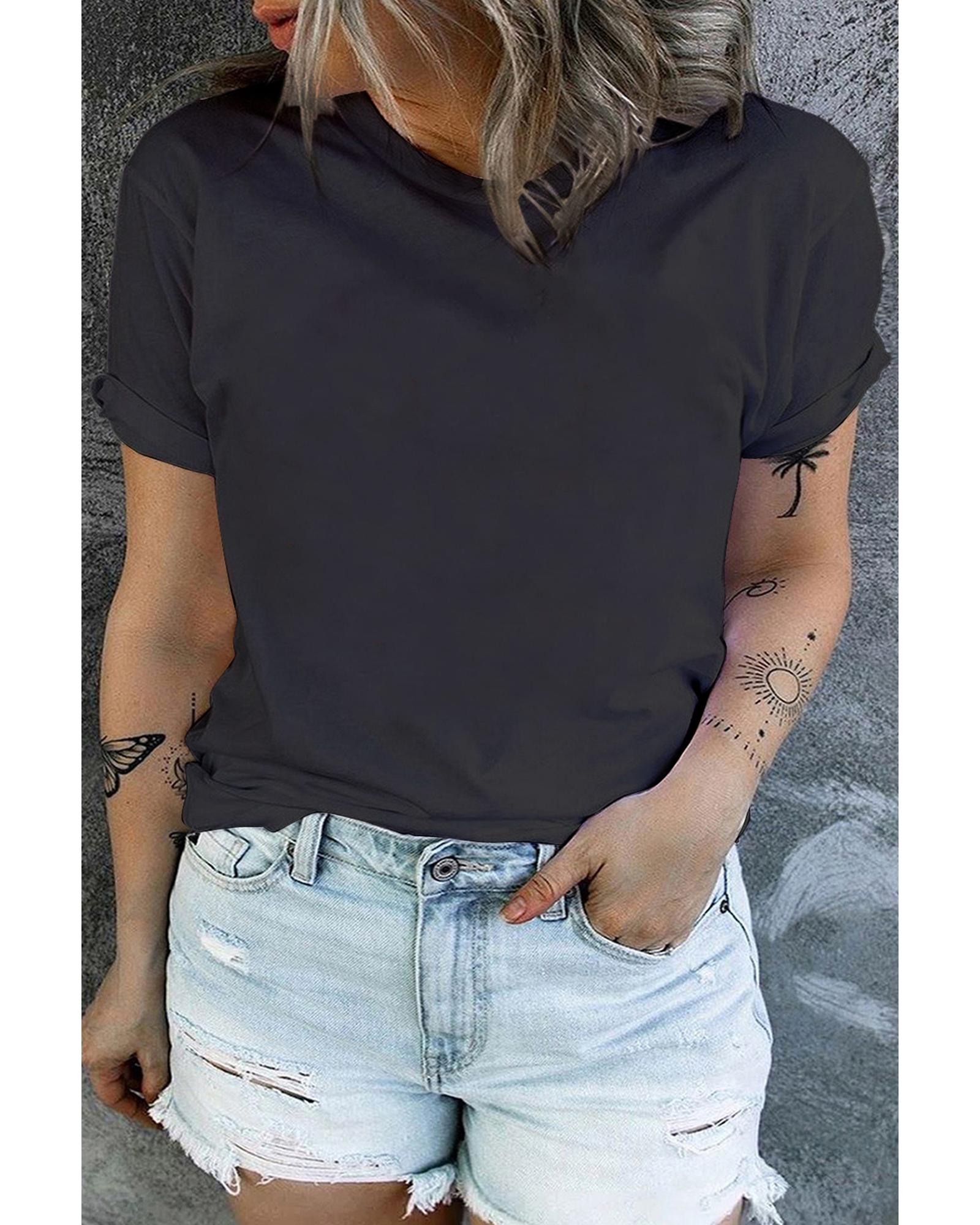 This black round neck T-shirt features rolled sleeves and a plus size cut, offering a trendy and flattering silhouette. Made from a high-quality fabric blend, it provides a relaxed and comfortable fit suitable for various casual or dressier occasions. The vibrant color options and high elasticity make it a versatile addition to any wardrobe.