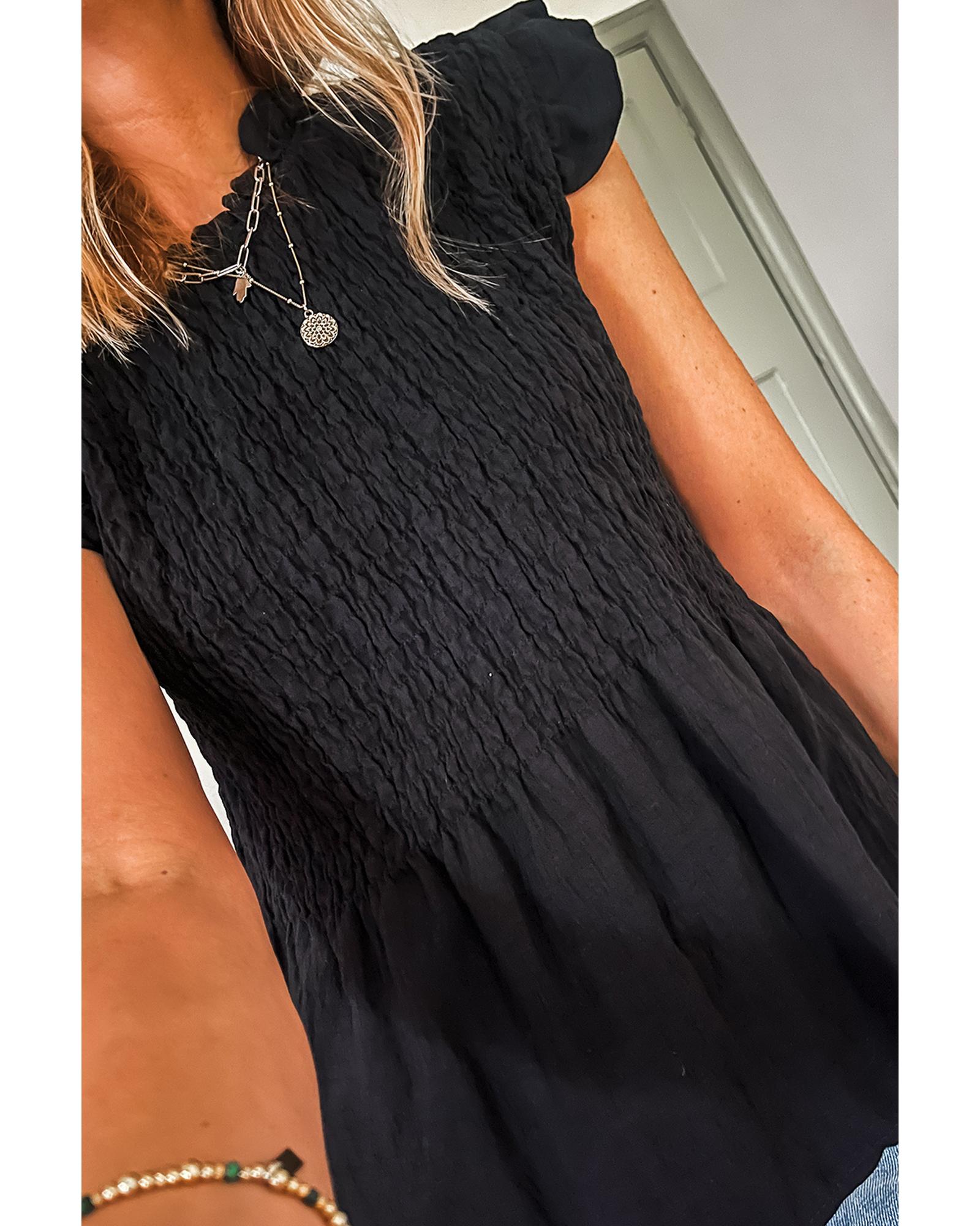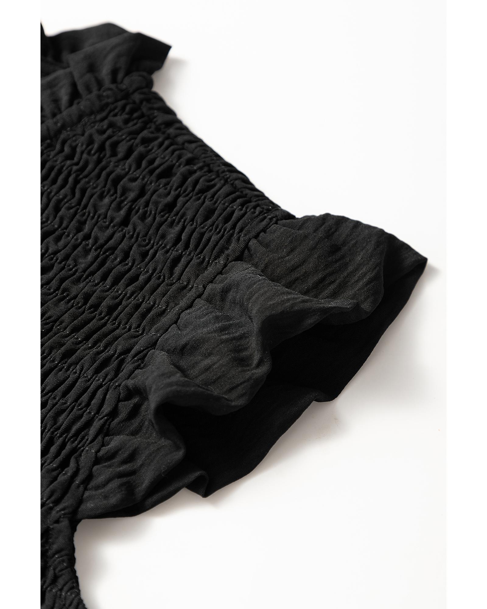 Package Content: 1 x Black Ruffle Short Sleeve Shirred Peplum Top
