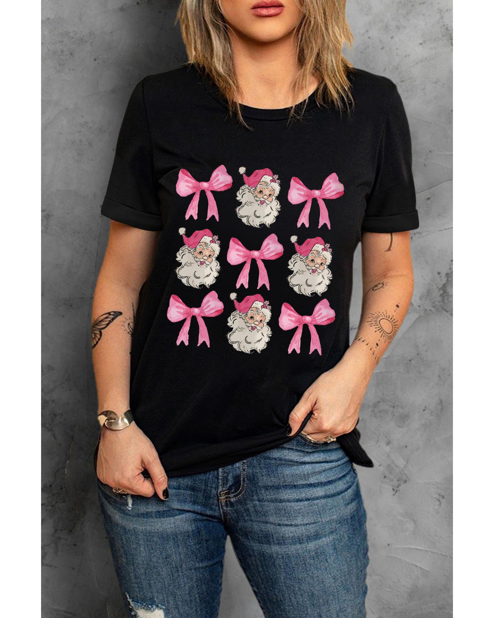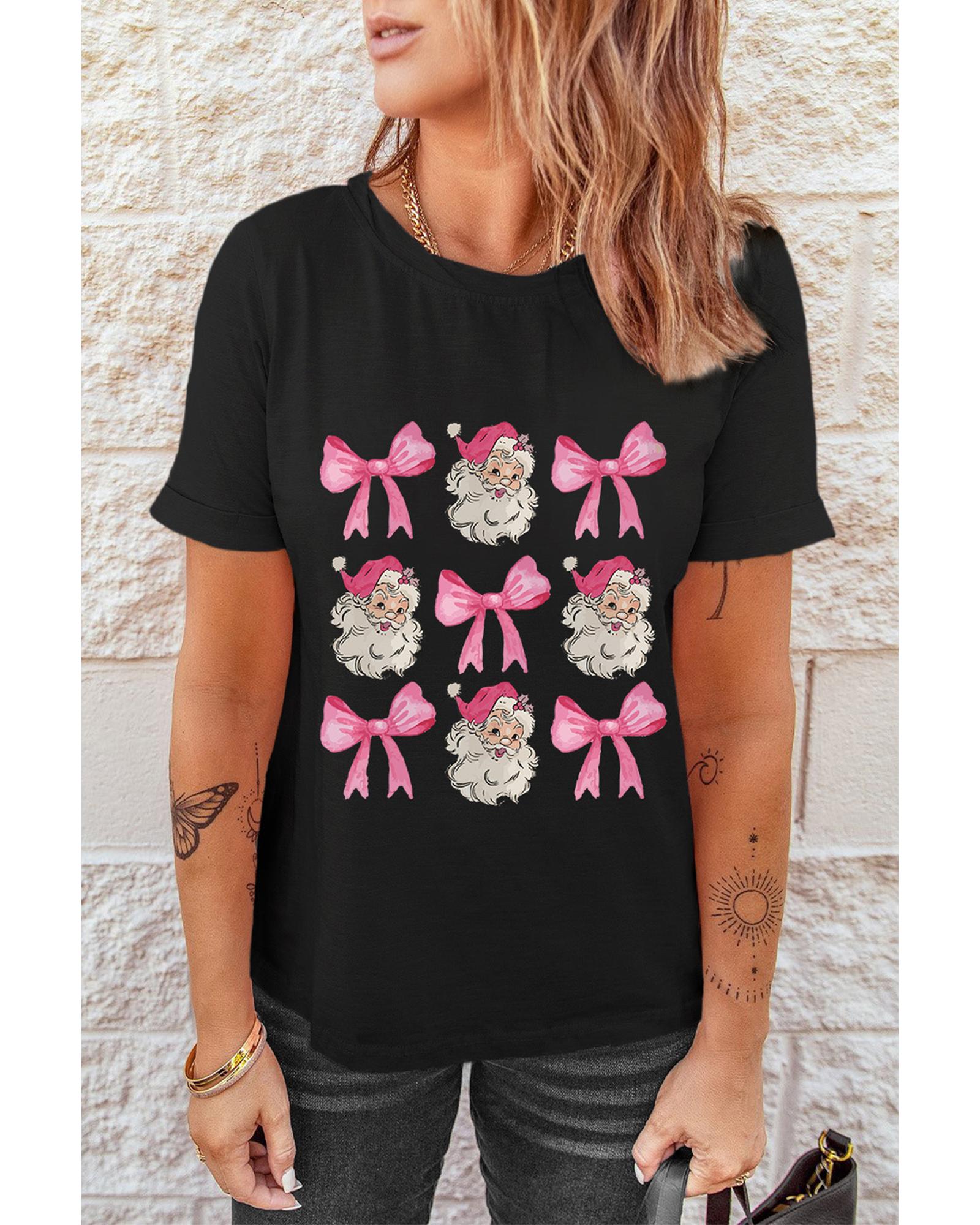 Black Santa Claus Bow Knot Christmas Graphic T Shirt – L
