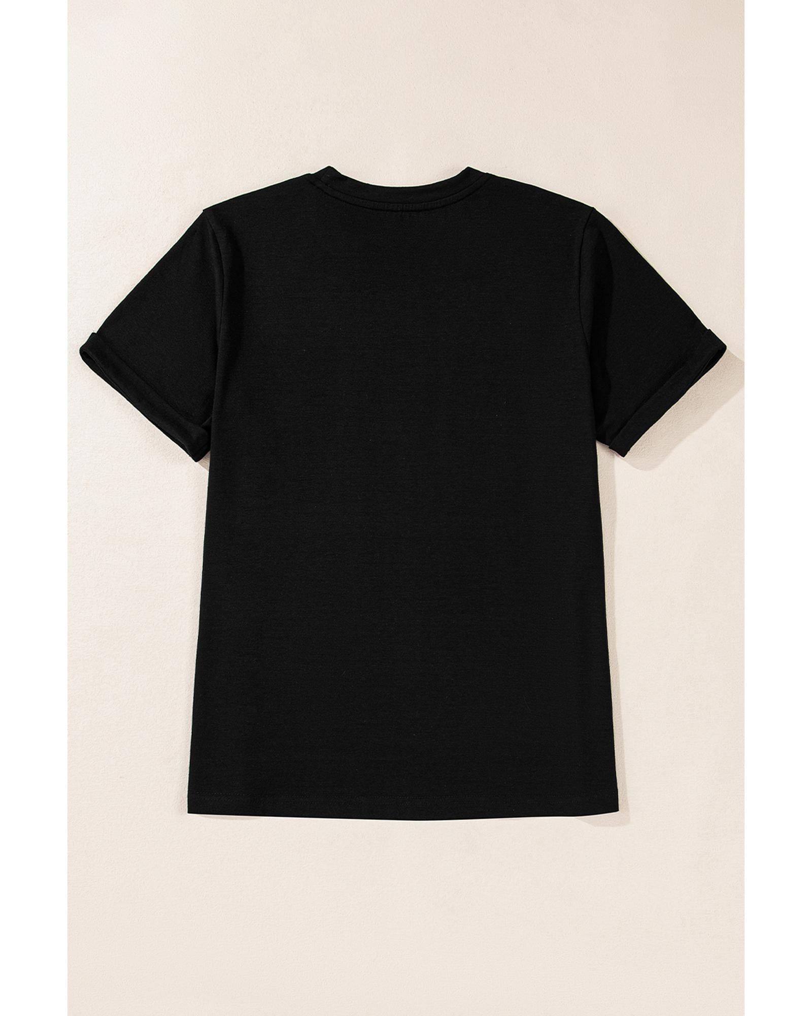 This casual T-shirt features a festive holiday design with a Santa Claus graphic accented by a leopard print bow. It offers a trendy, fitted look suitable for various casual occasions, especially during the holiday season.