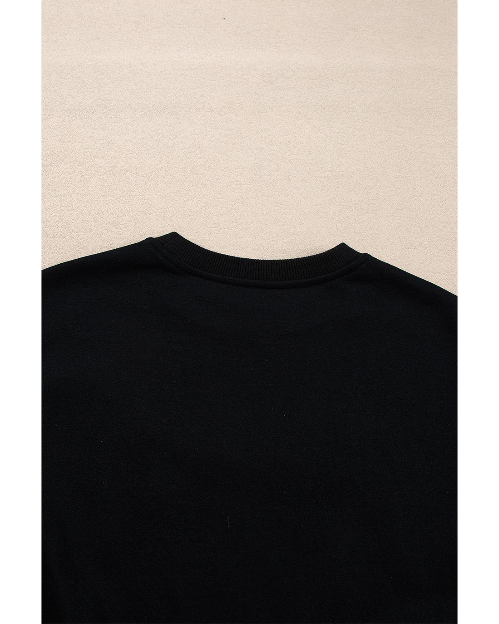 This stylish black sequin merry graphic pullover and shorts outfit offers a trendy and fitted look, perfect for festive occasions or casual wear. Designed exclusively for women, it combines elegance with functionality, making it a versatile addition to any wardrobe.