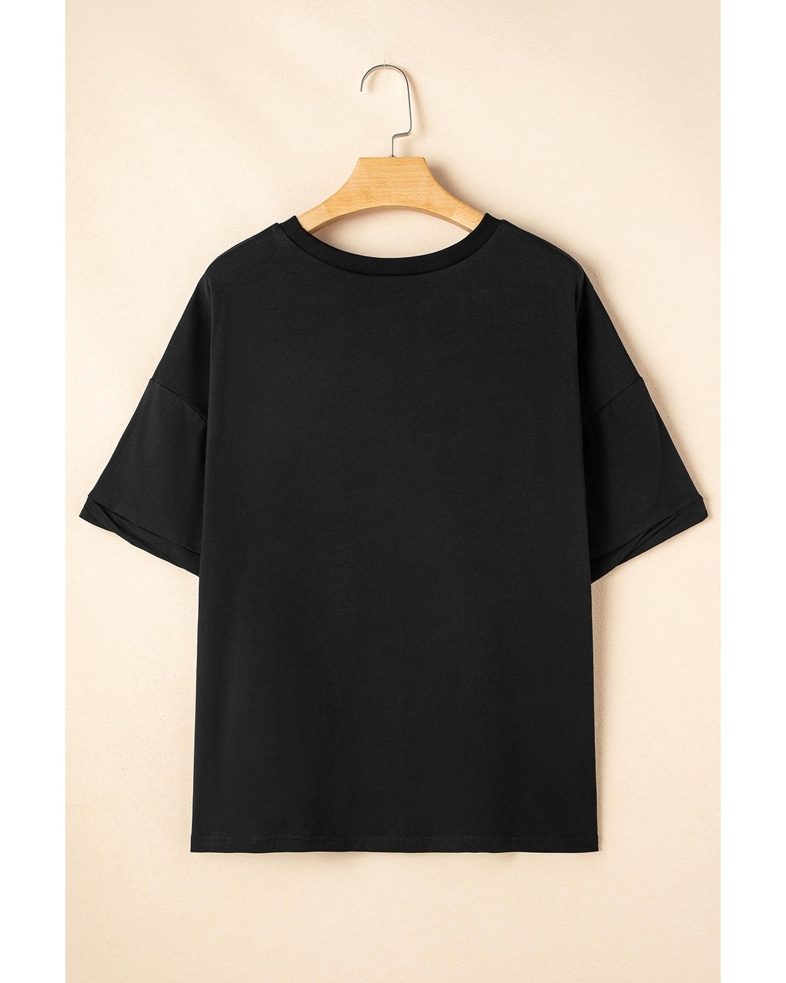 Black Sequin Strawberry Graphic High Low Relaxed Fit Tee – M