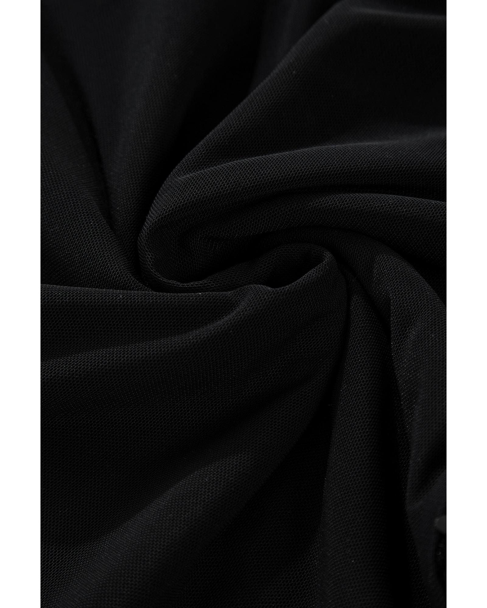 - Sheer mesh fabric with mock neck design