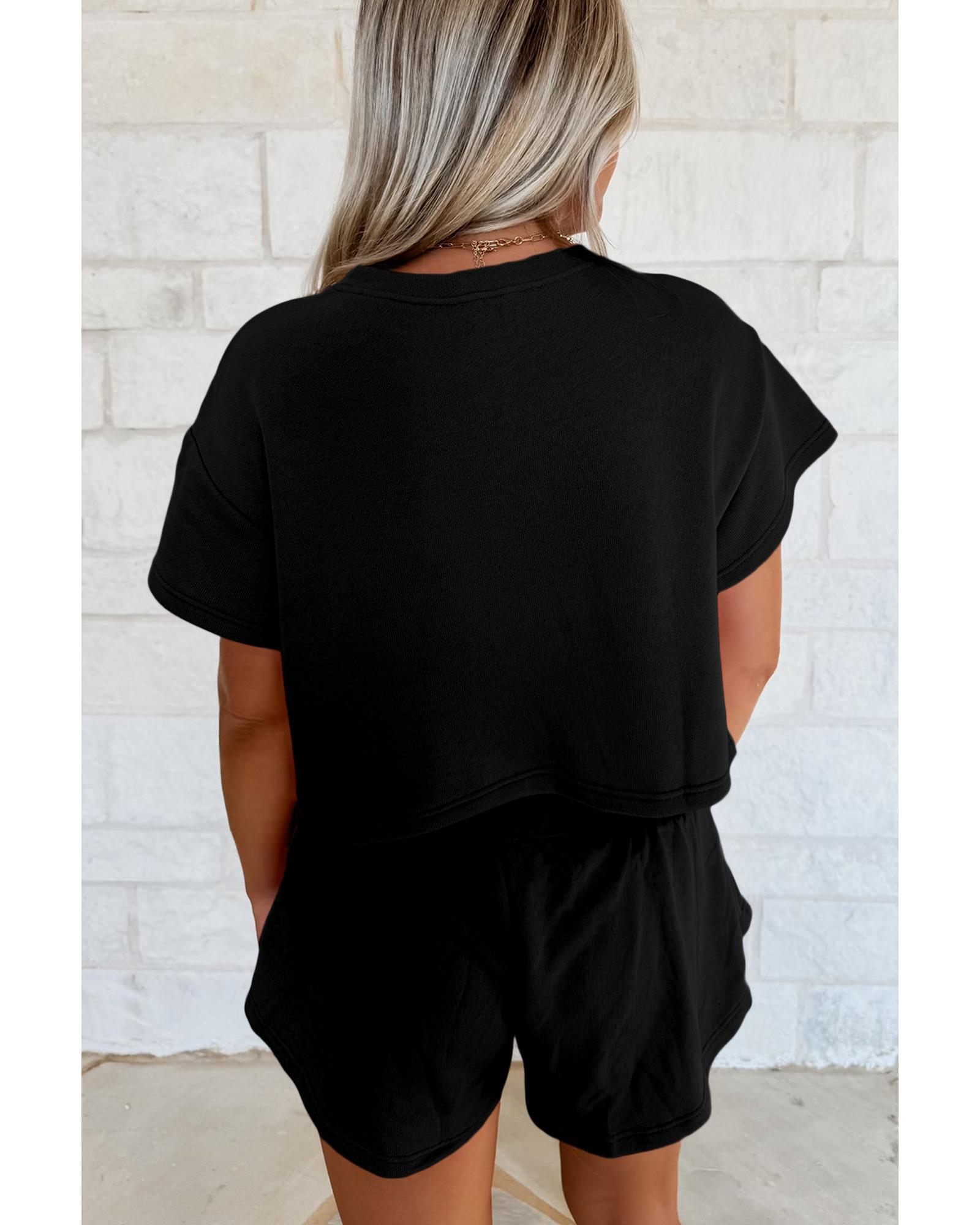 Black Sequined Flag Bow Pattern Short 2pcs Skort Set – XL