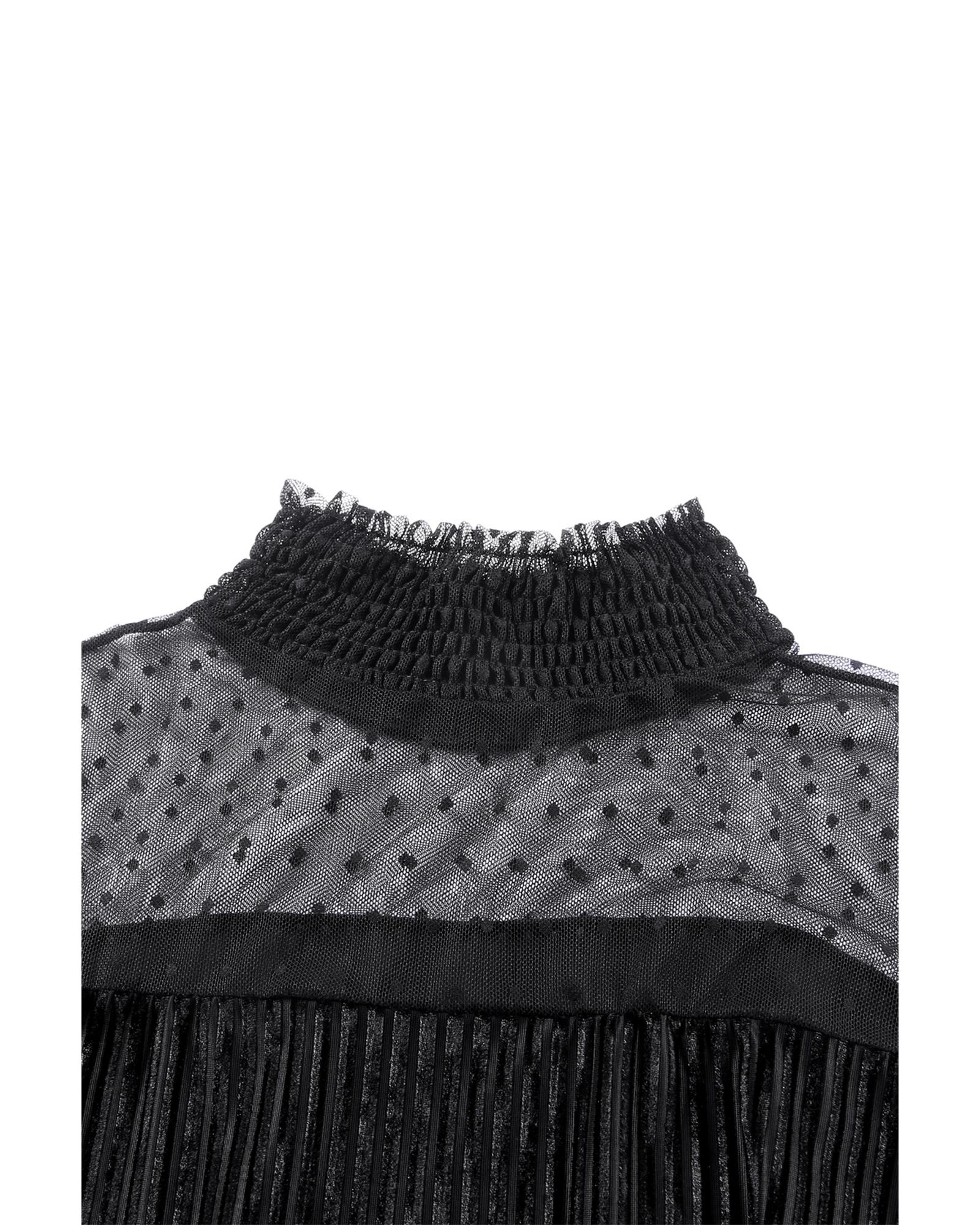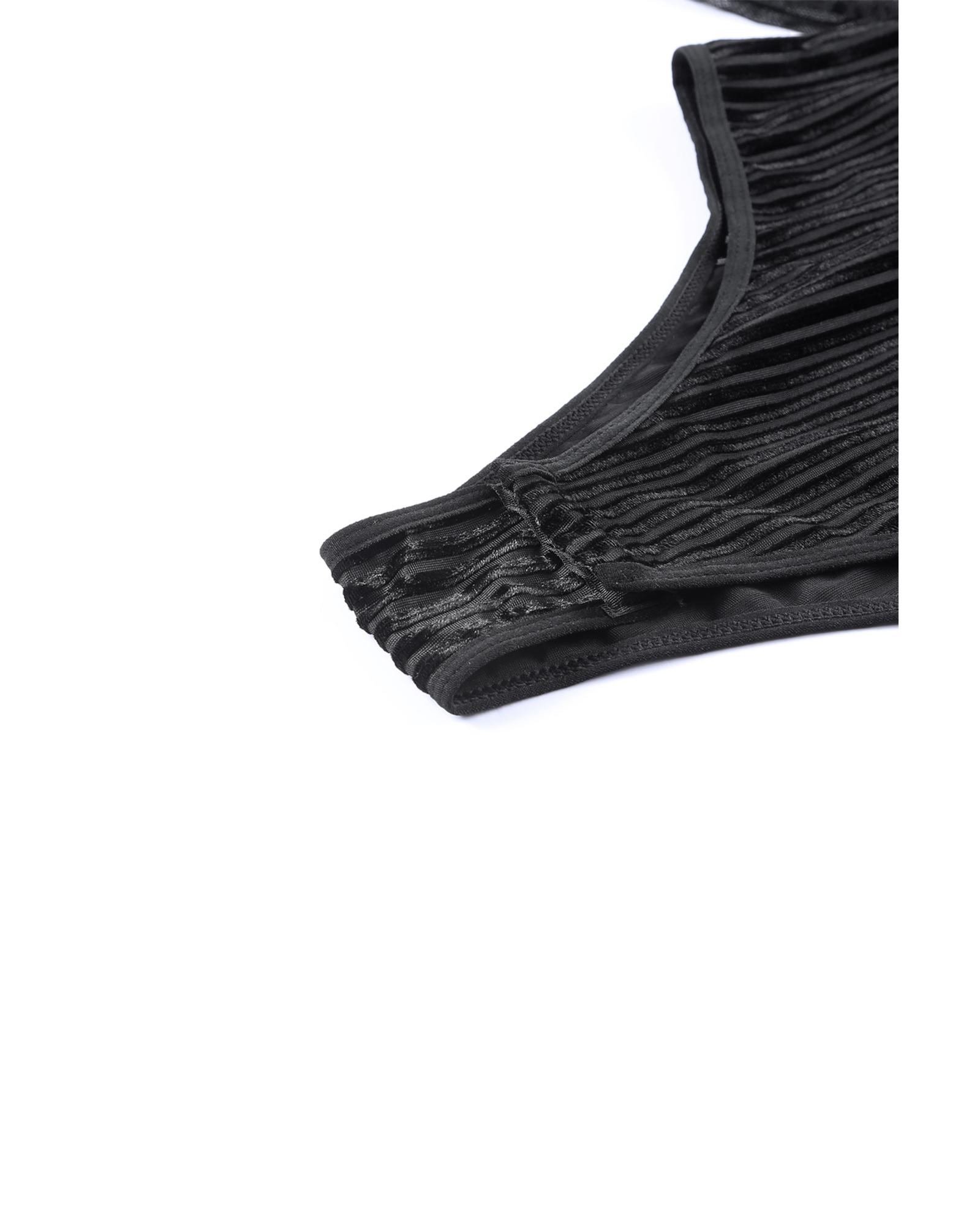 Black Sheer Dotty Long Sleeve Ribbed Velvet Bodysuit – XL