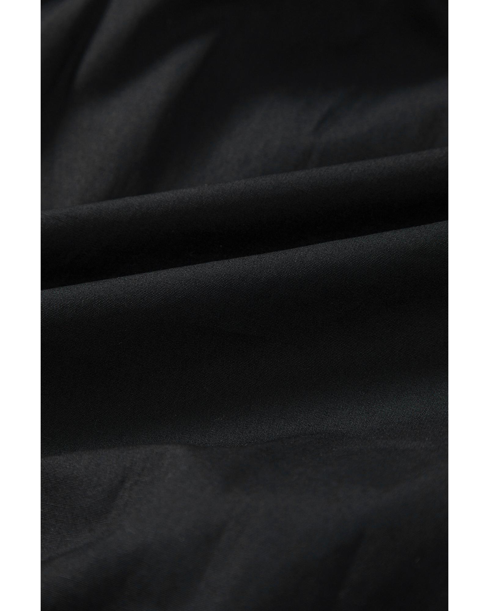 This black shirt-style button-down dress features a stylish puff sleeve design and a ruffle hem, offering a flattering silhouette suitable for various occasions. The collared neckline adds a classic touch to the modern design, making it a versatile addition to your wardrobe.