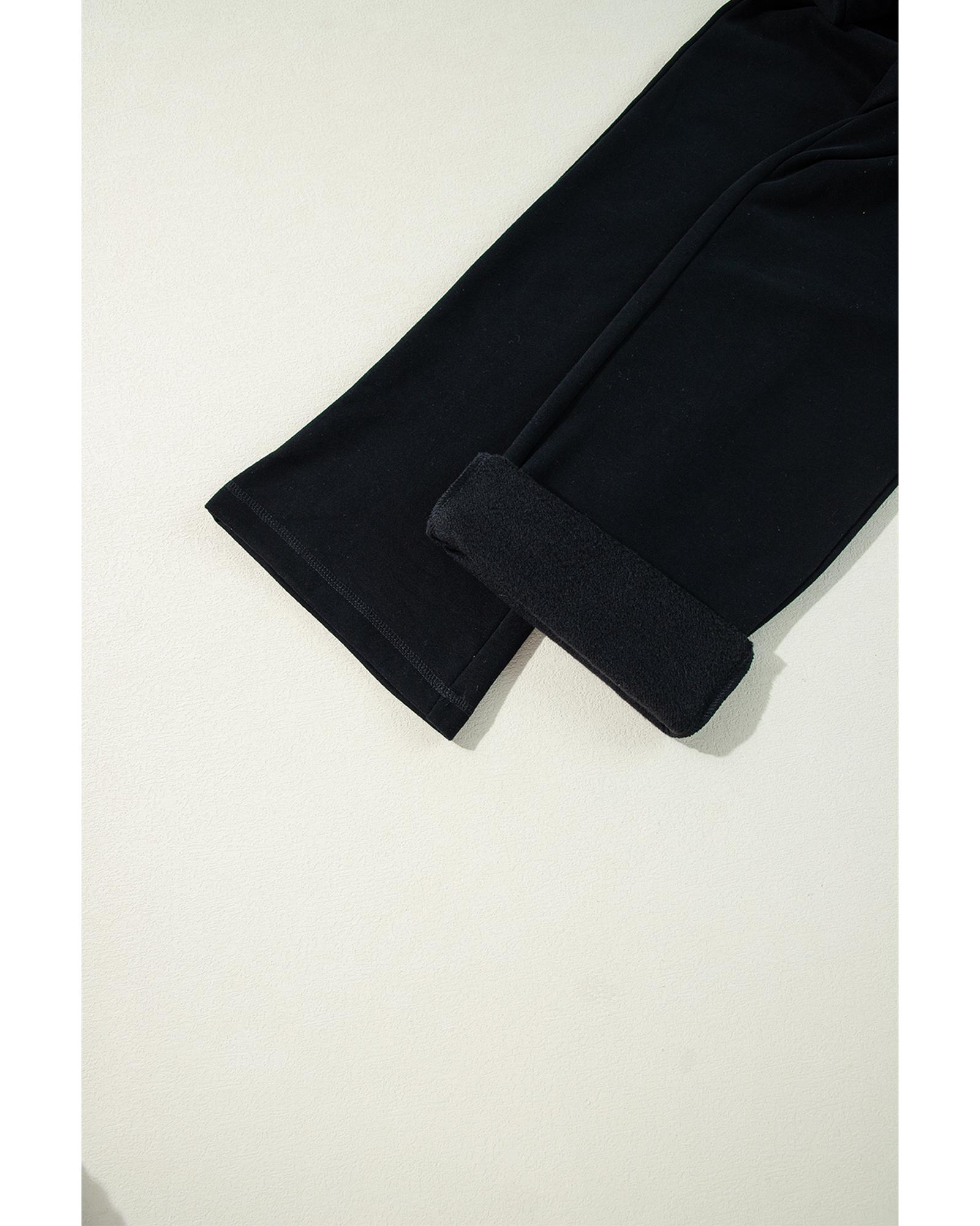 This pair of casual pants features a solid black color with a fleece lining, providing warmth and comfort. Designed with a straight leg cut and an adjustable drawstring waist, these pants offer a relaxed and stylish fit suitable for various body types and sizes.