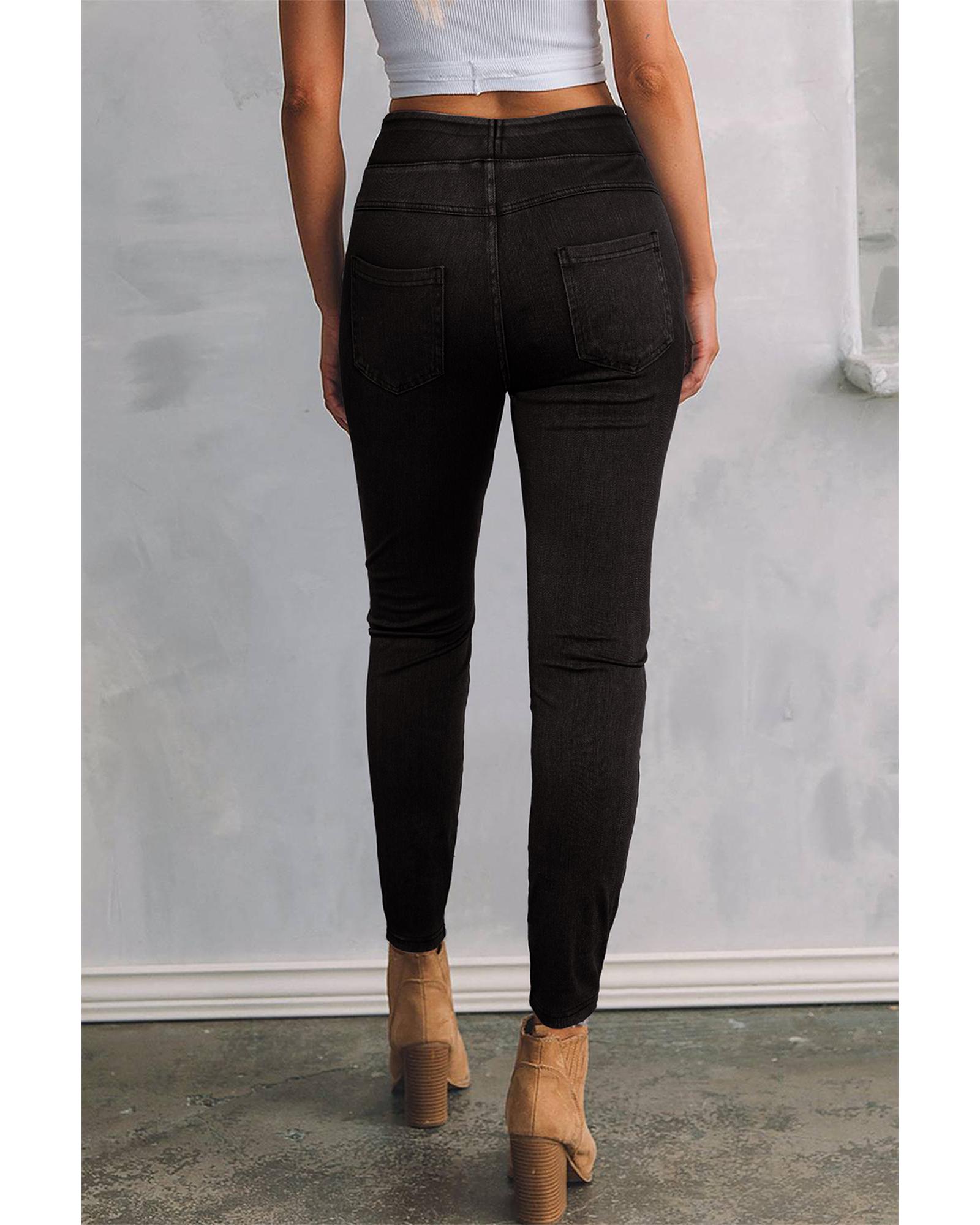 This pair of black high waist jeggings offers a sleek and stylish look with a comfortable fit. Designed to enhance your silhouette, these jeggings combine trendy fashion with practical features for everyday wear.