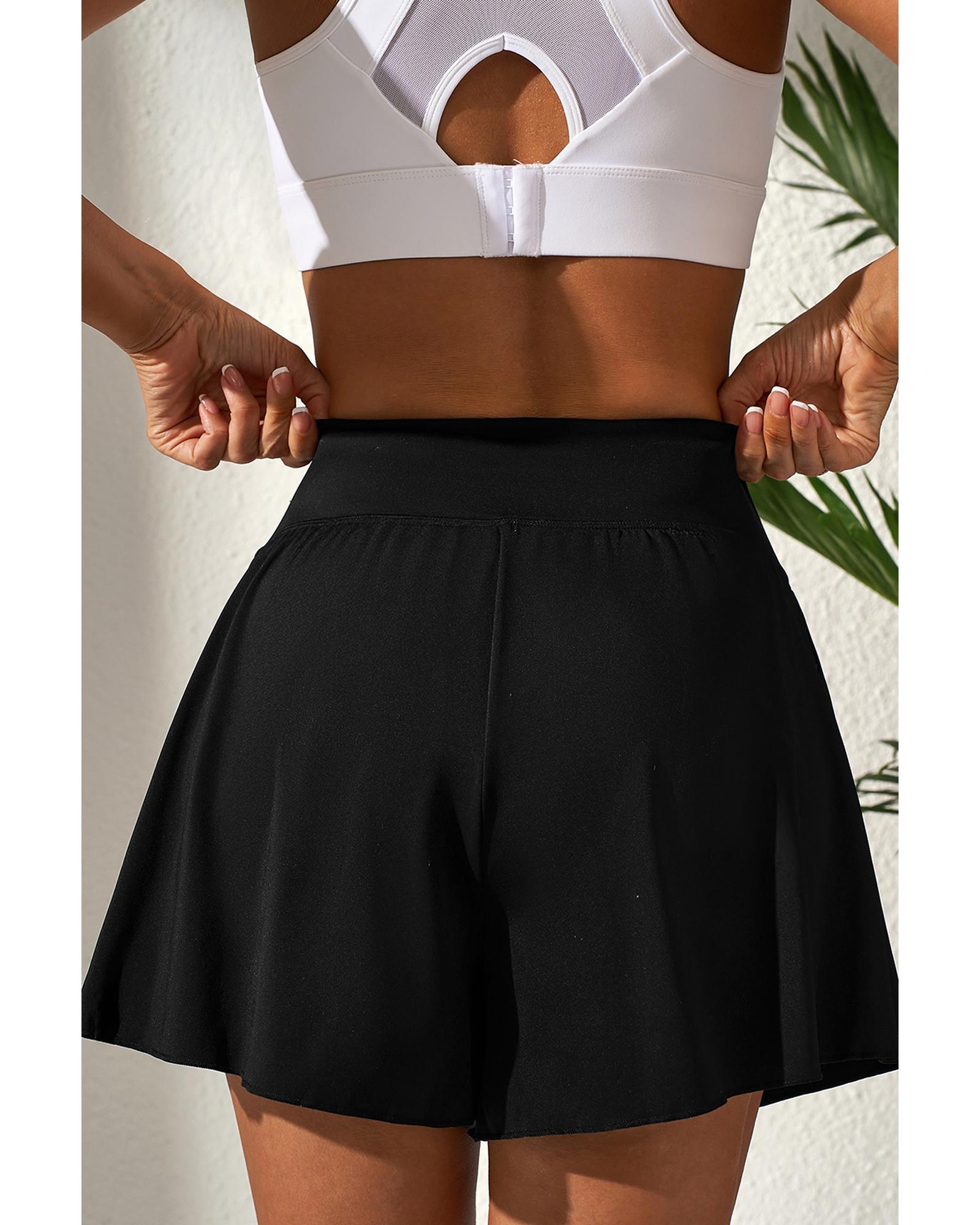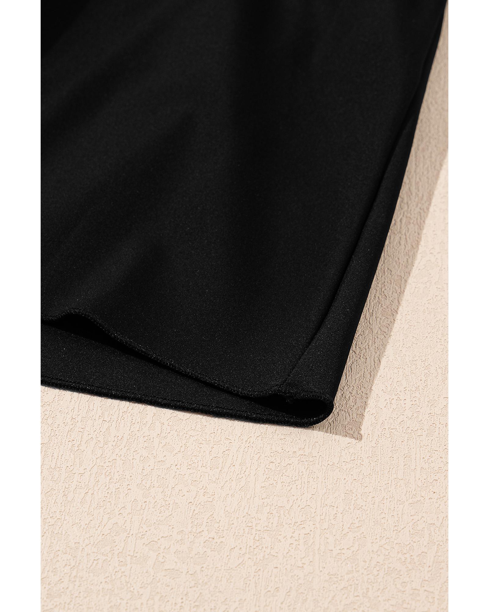 This high waist wide leg swim bottom features a sleek black solid color design, offering a stylish and comfortable fit for beach or pool days. Its versatile style pairs well with various swimwear tops, making it a great addition to your swimwear collection.