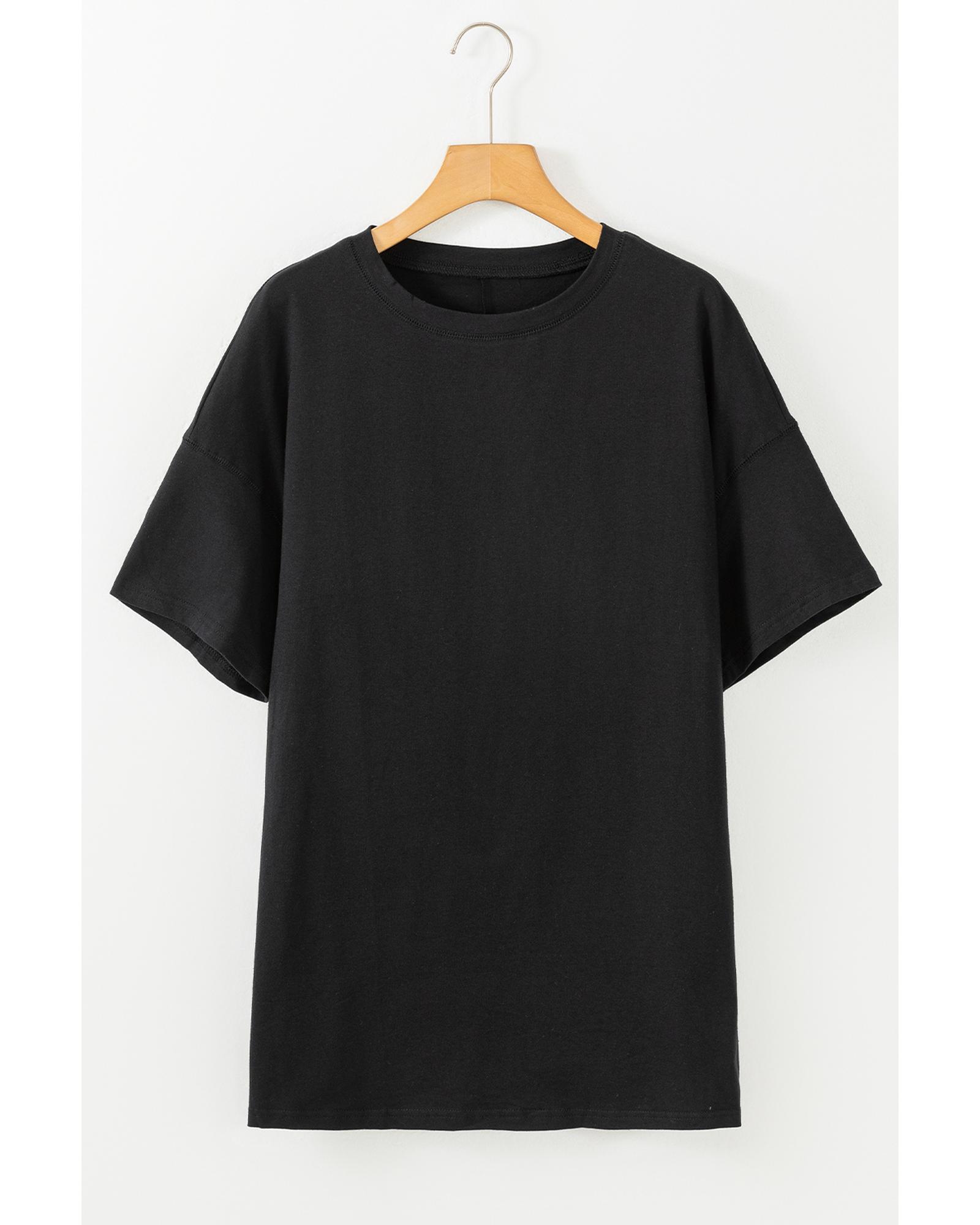 Black Solid Color Round Neck Basic Tunic T Shirt – XL