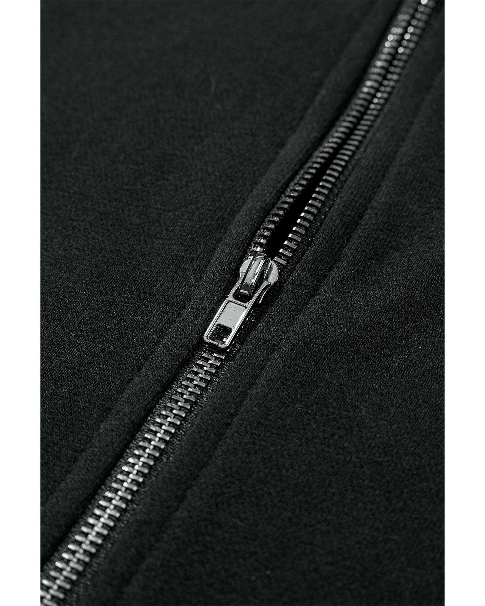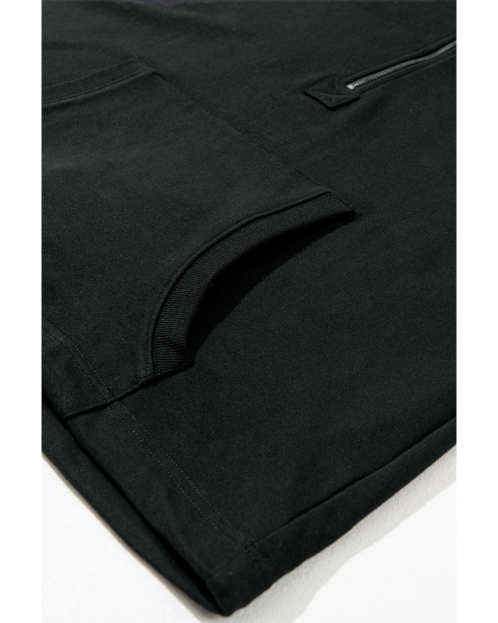 Black Solid Kangaroo Pocket Half Zipper Oversized Hoodie – M