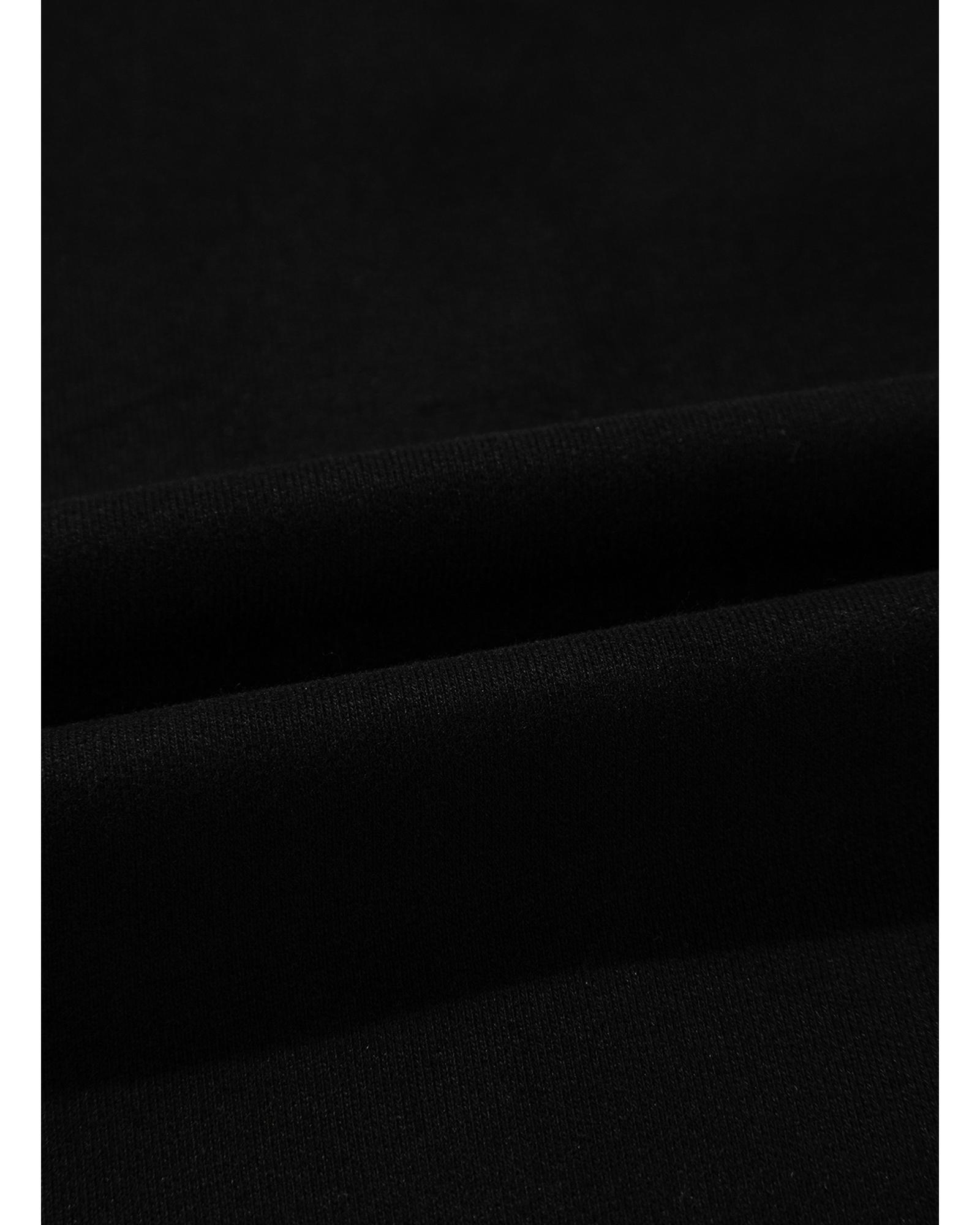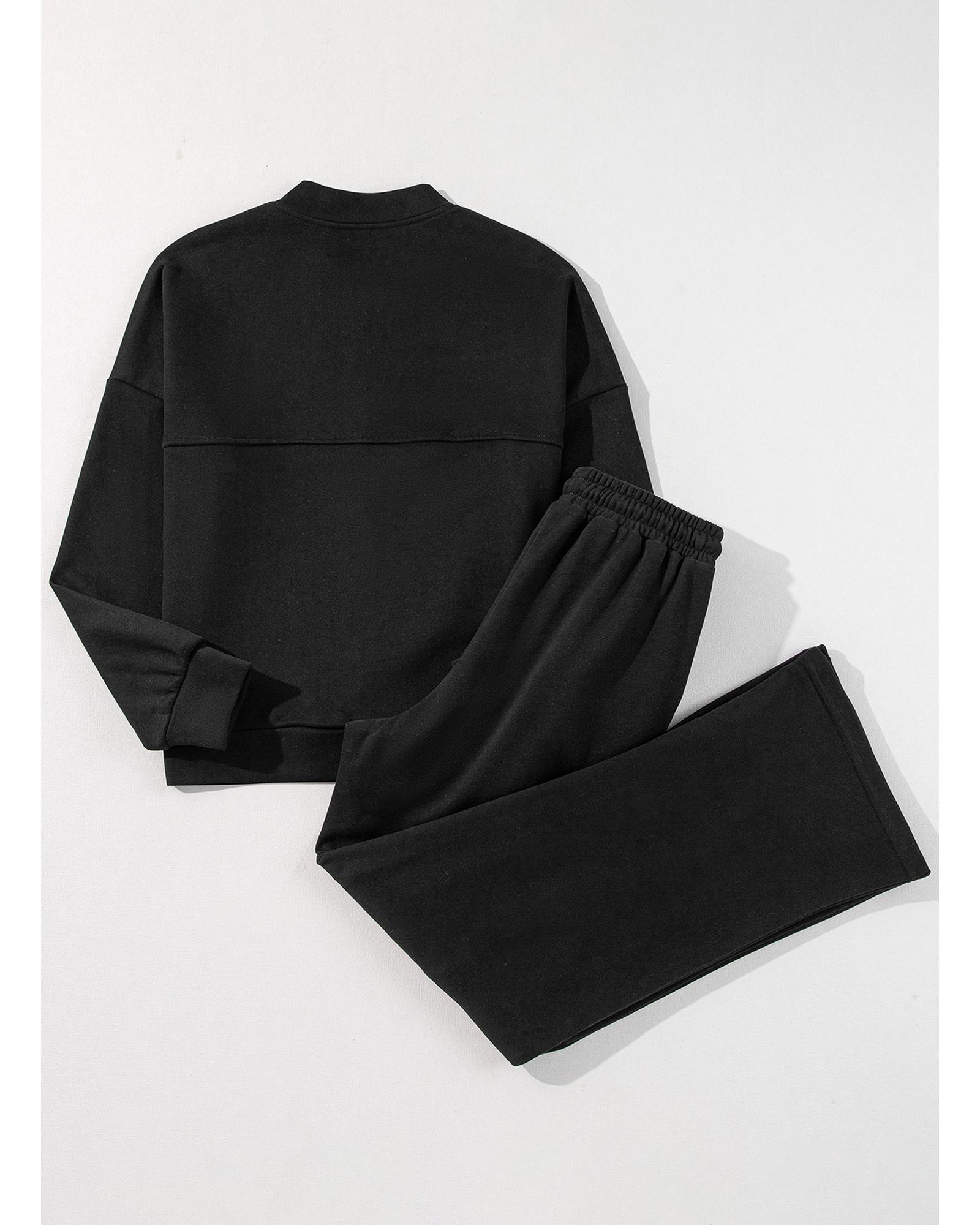 Black Solid Seamed Zipper Jacket and Drawstring Waist Pants Set – L