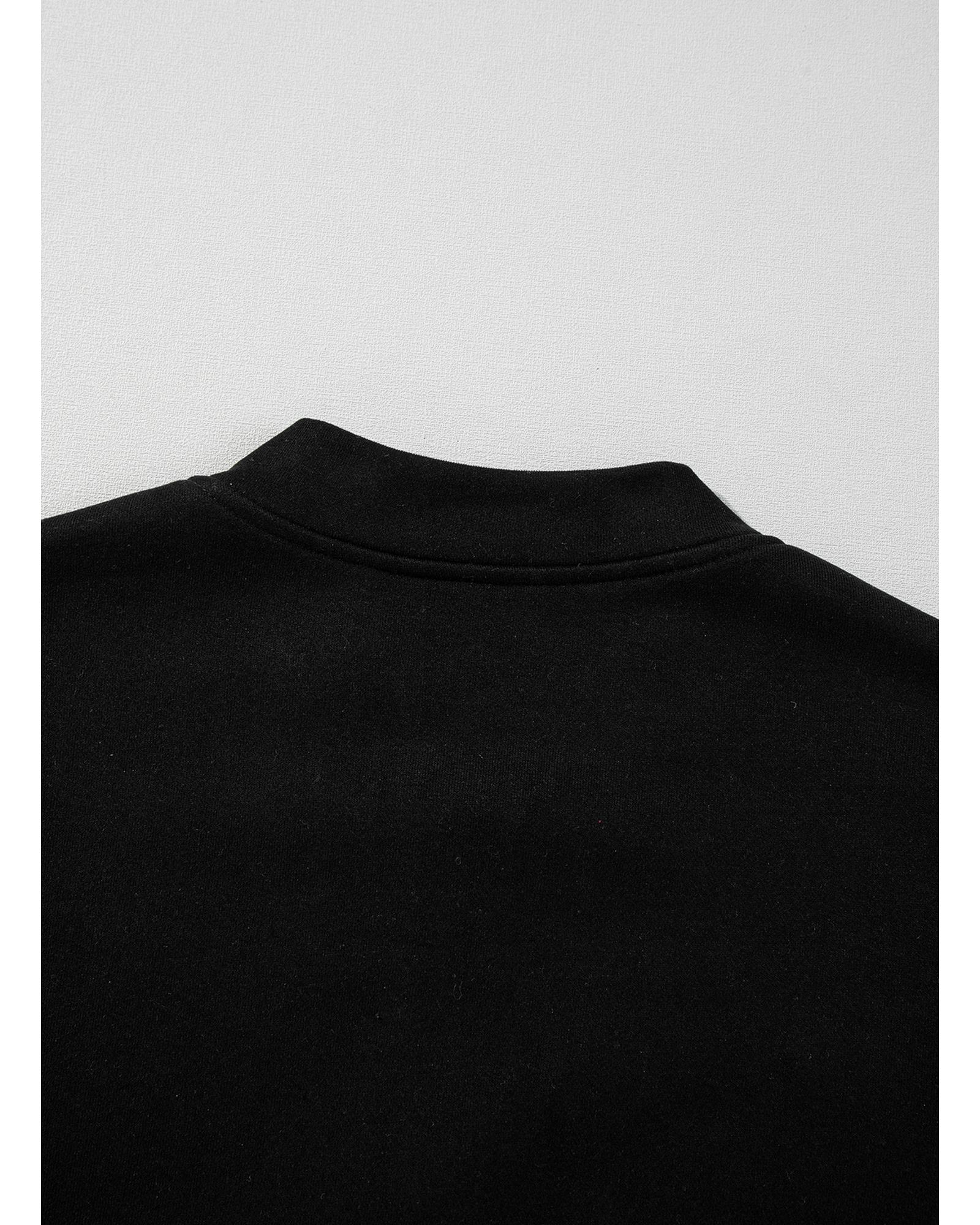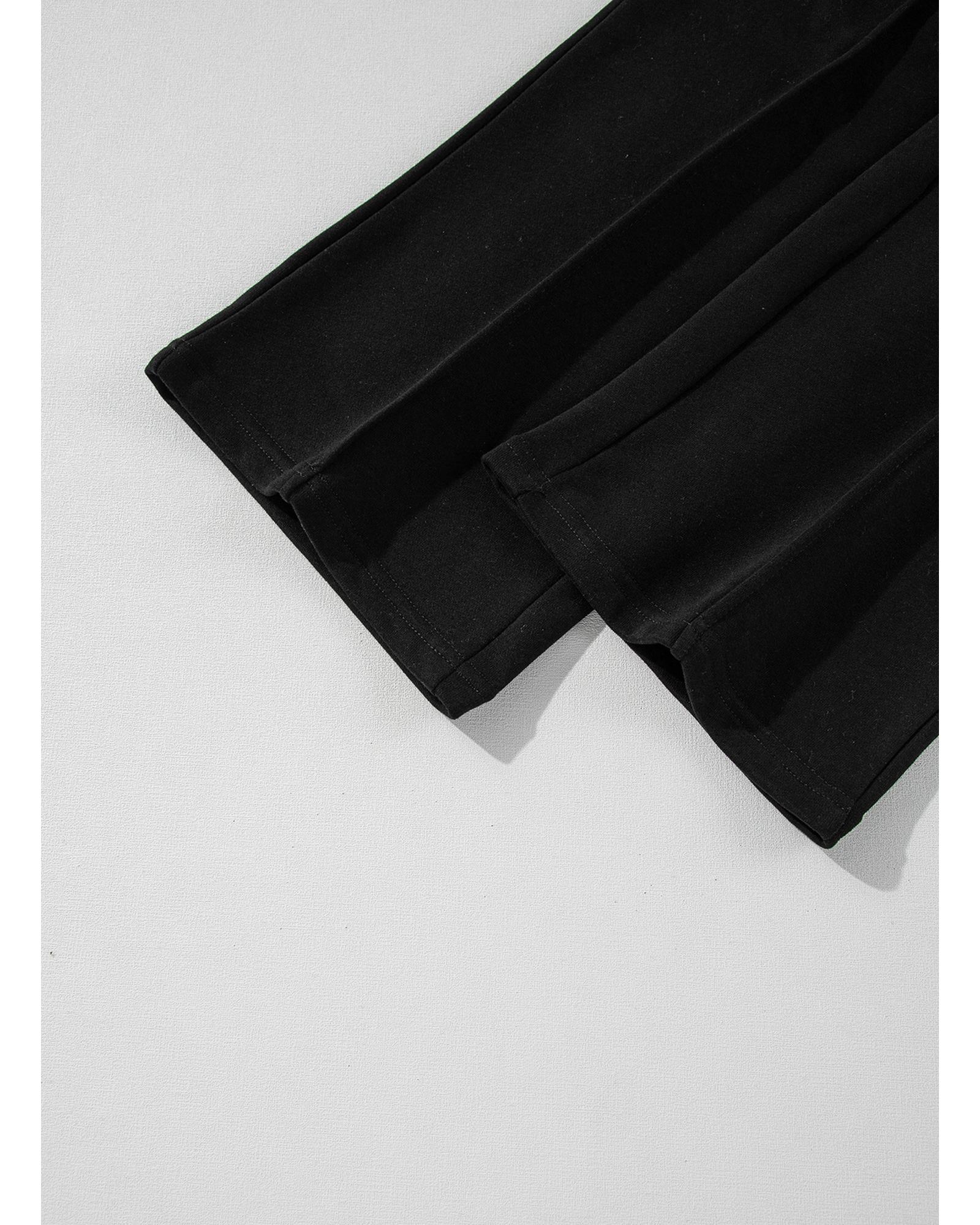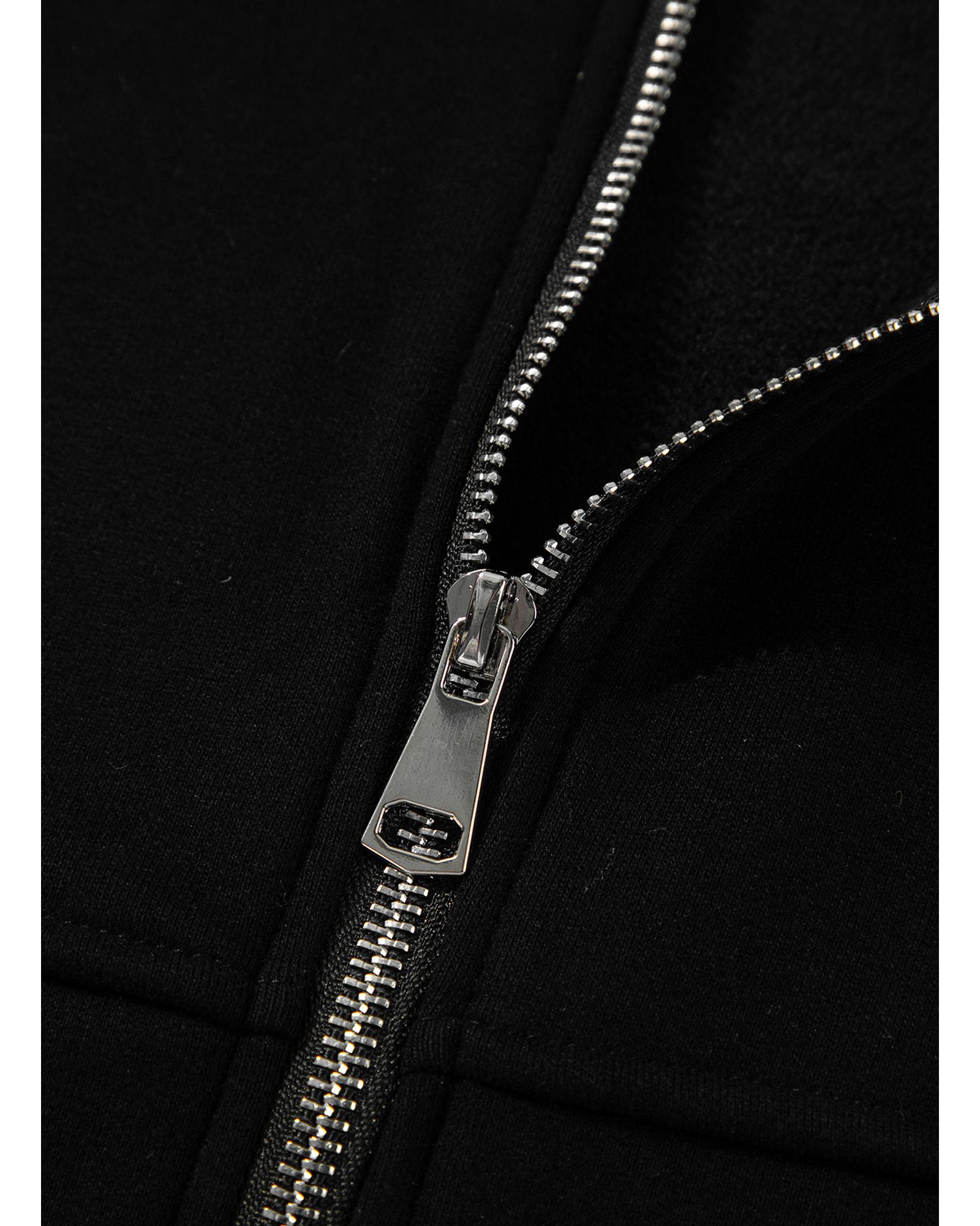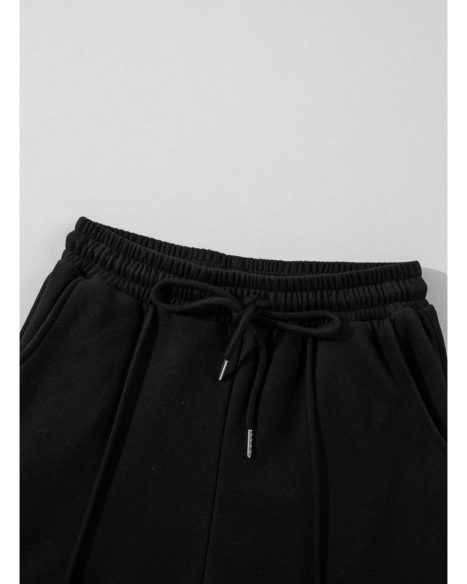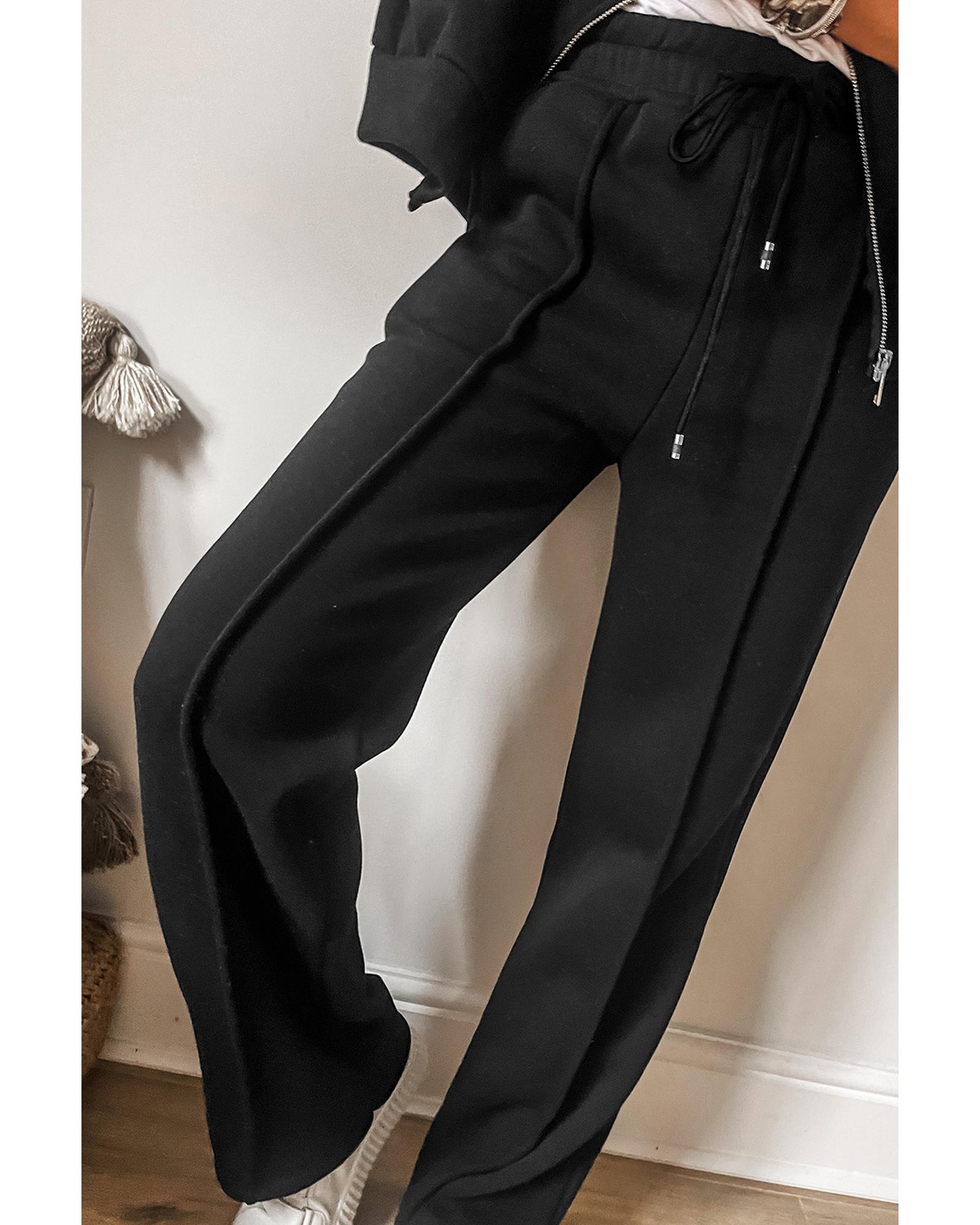 This set features a sleek black design with a seamed zipper jacket and drawstring waist pants, combining comfort and style for versatile wear. The outfit is suitable for various casual and fashionable occasions, offering an effortless and trendy look.