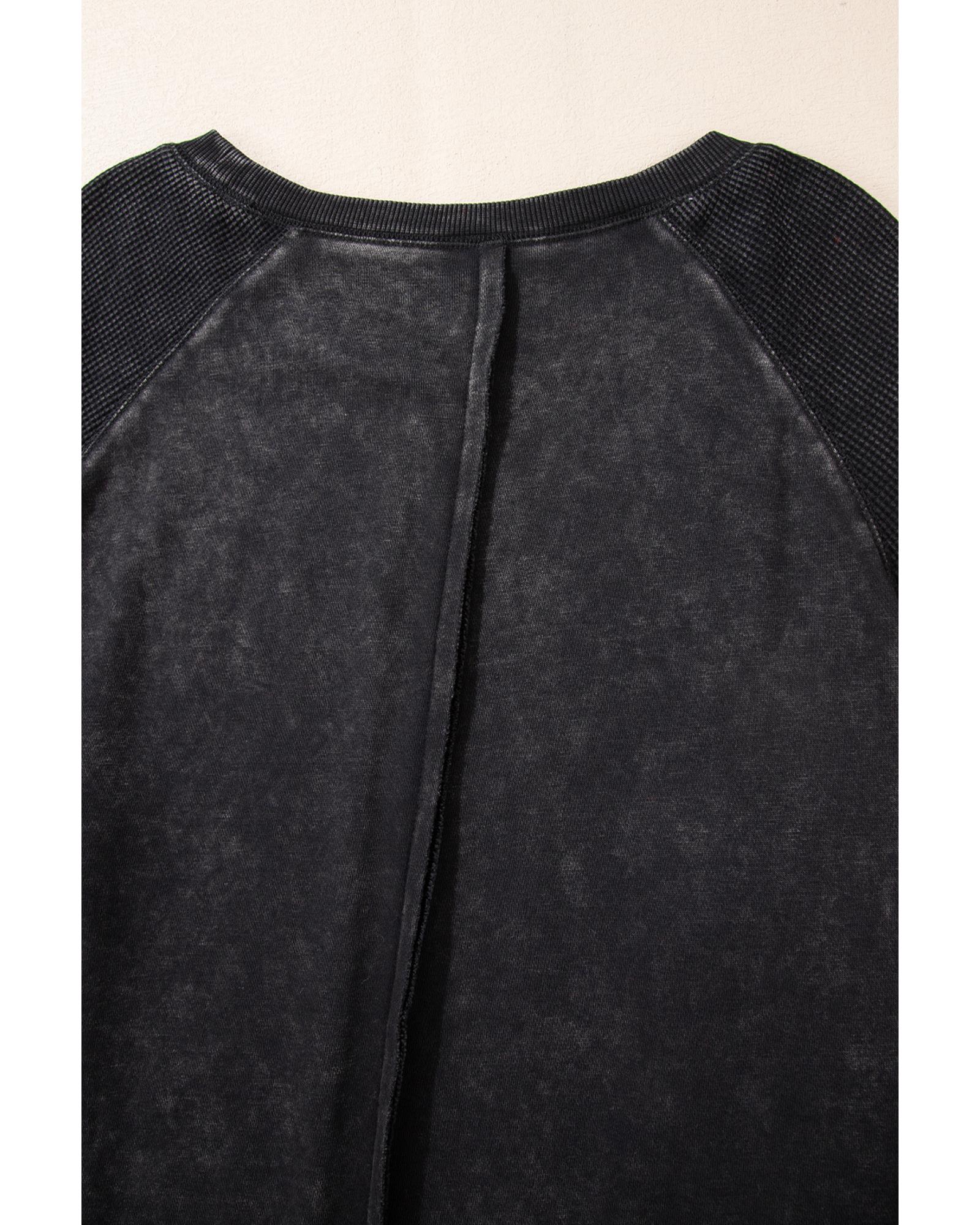 Black Solid Waffle Knit Patchwork Raglan Sleeve Sweatshirt – M
