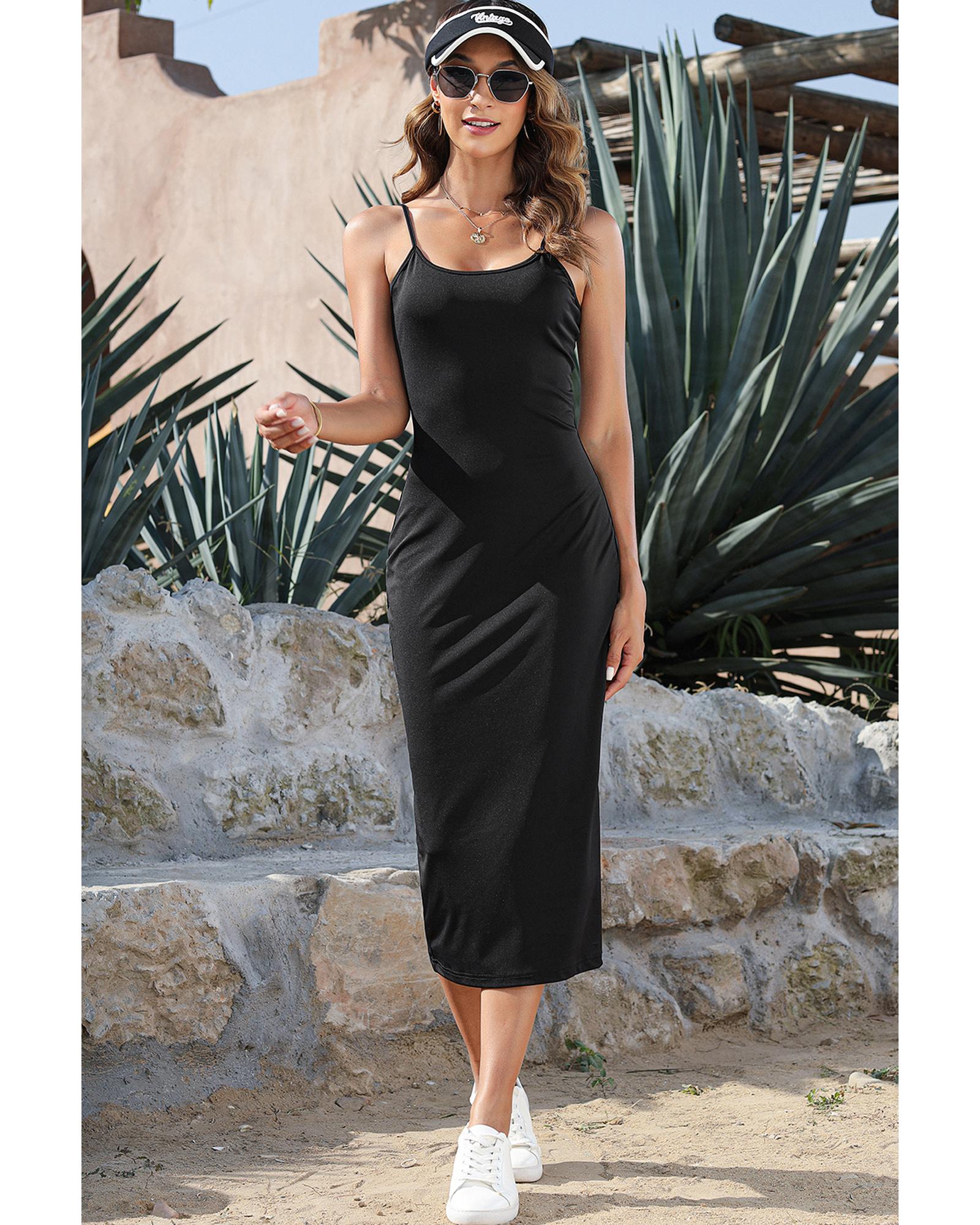This black spaghetti straps bodycon midi dress is designed to accentuate your curves with a sleek fit and stylish appearance. Made from high-quality fabric, it offers comfort and flexibility, making it suitable for various occasions such as parties, dates, or casual outings. Its classic solid color and timeless design ensure it remains a versatile wardrobe staple.