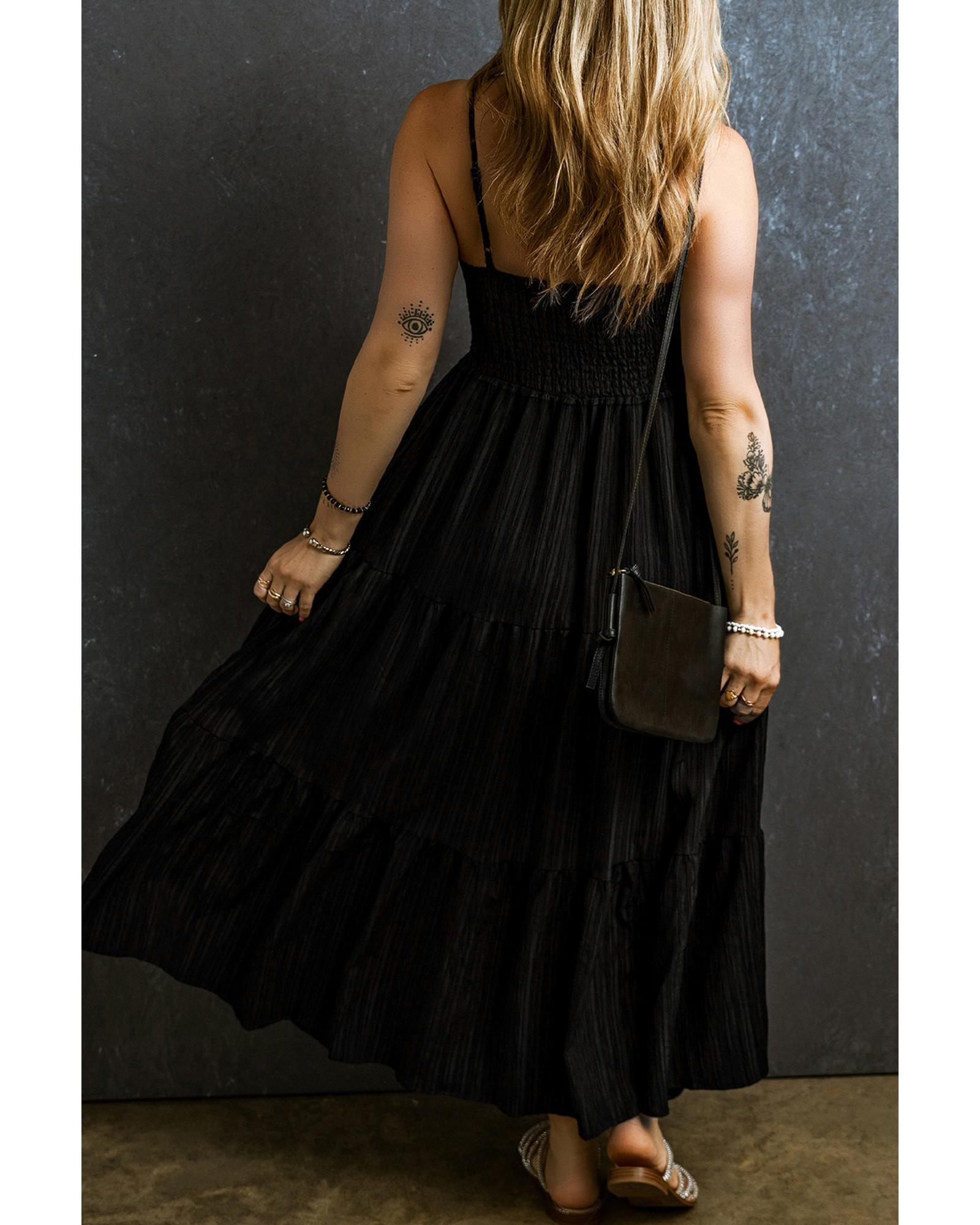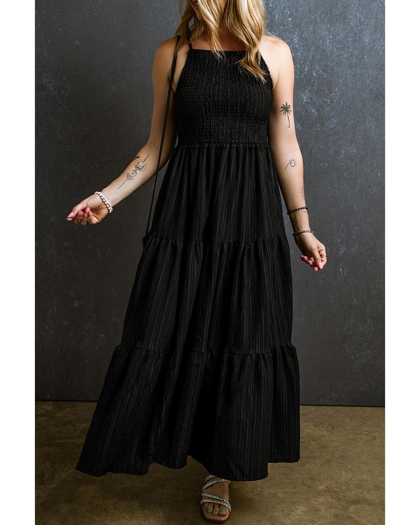Black Spaghetti Straps Smocked Pleated Tiered Maxi Dress – M