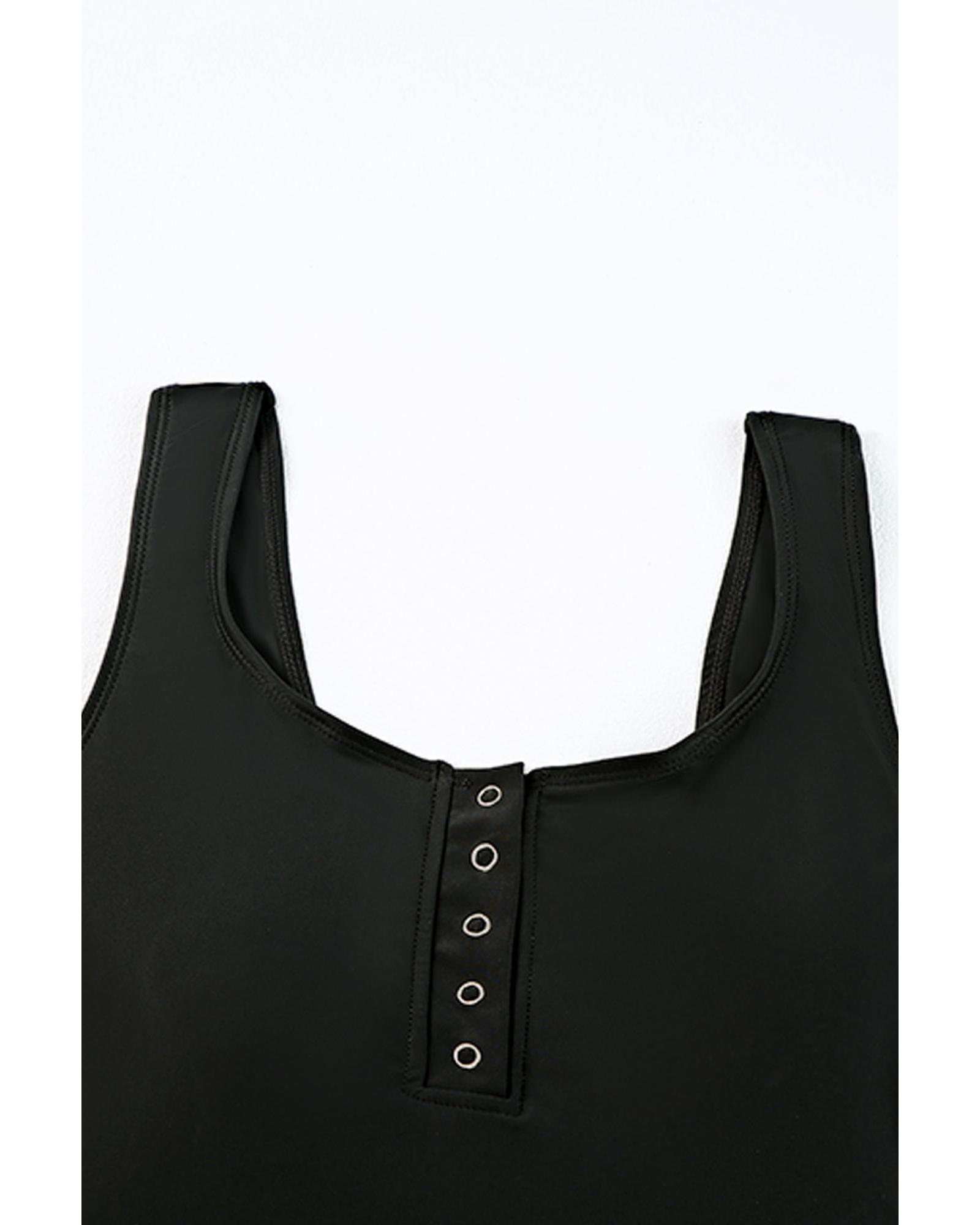 Black Square Neck Sleeveless Fashion Print Tankini Set – M