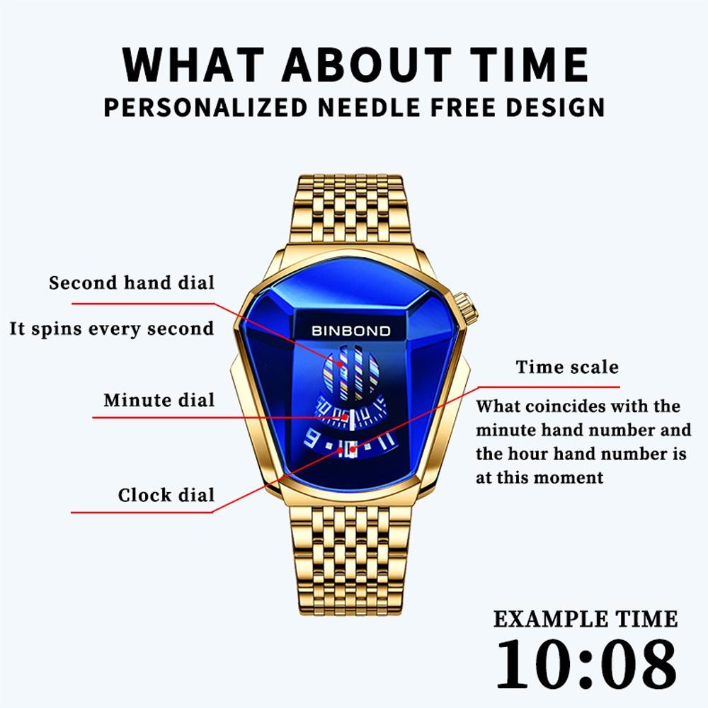 - Display: Analog with small three hands and luminous features