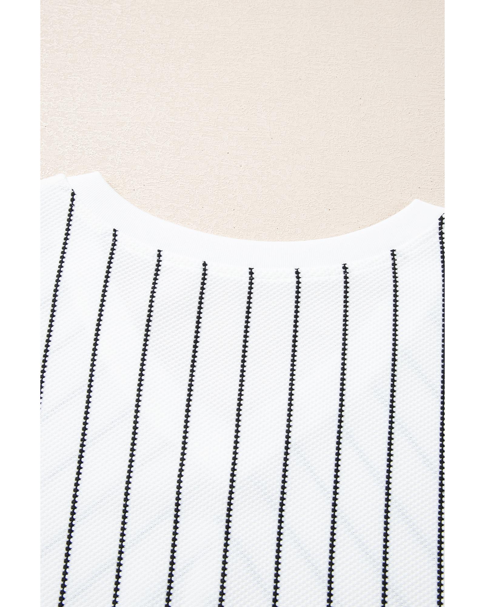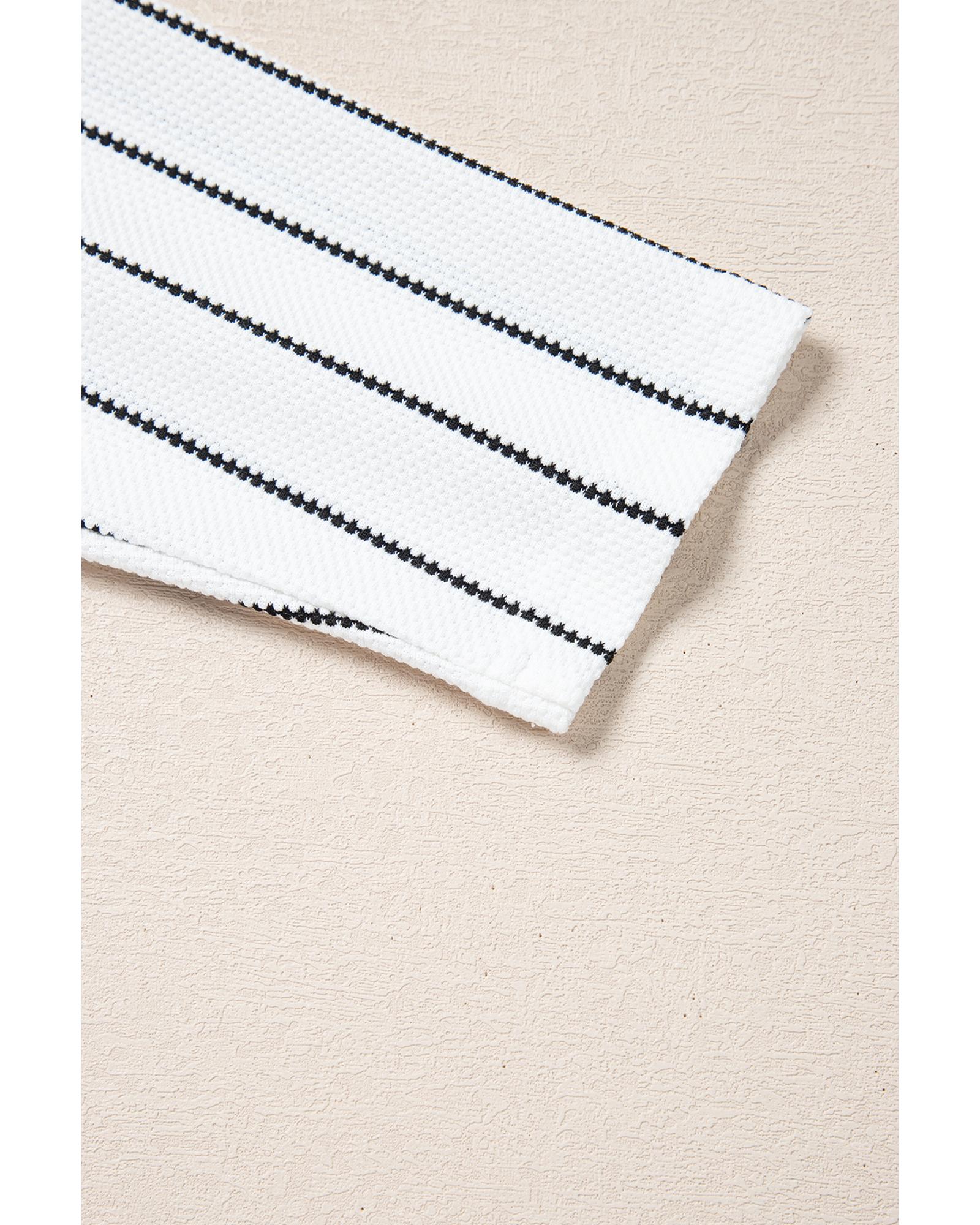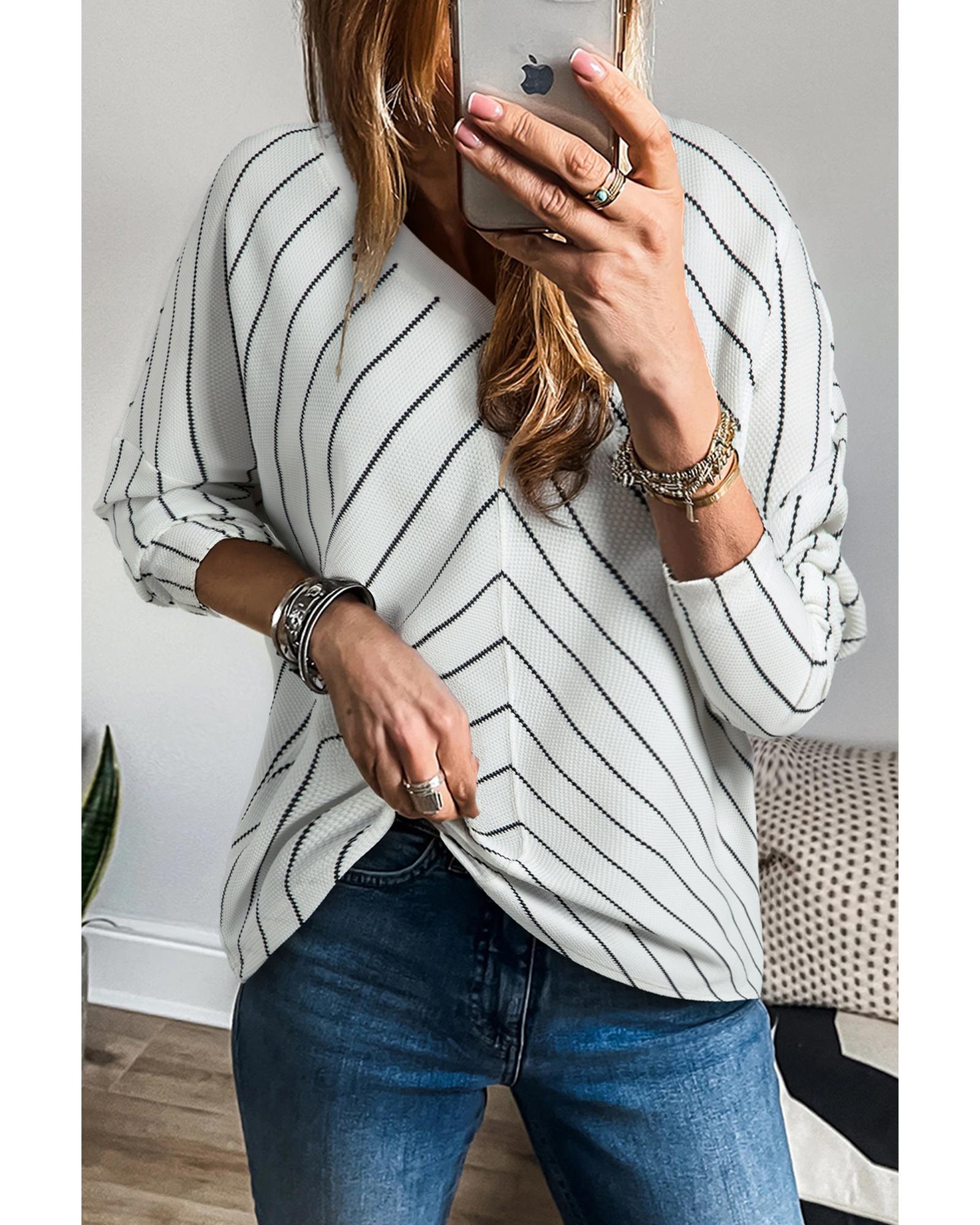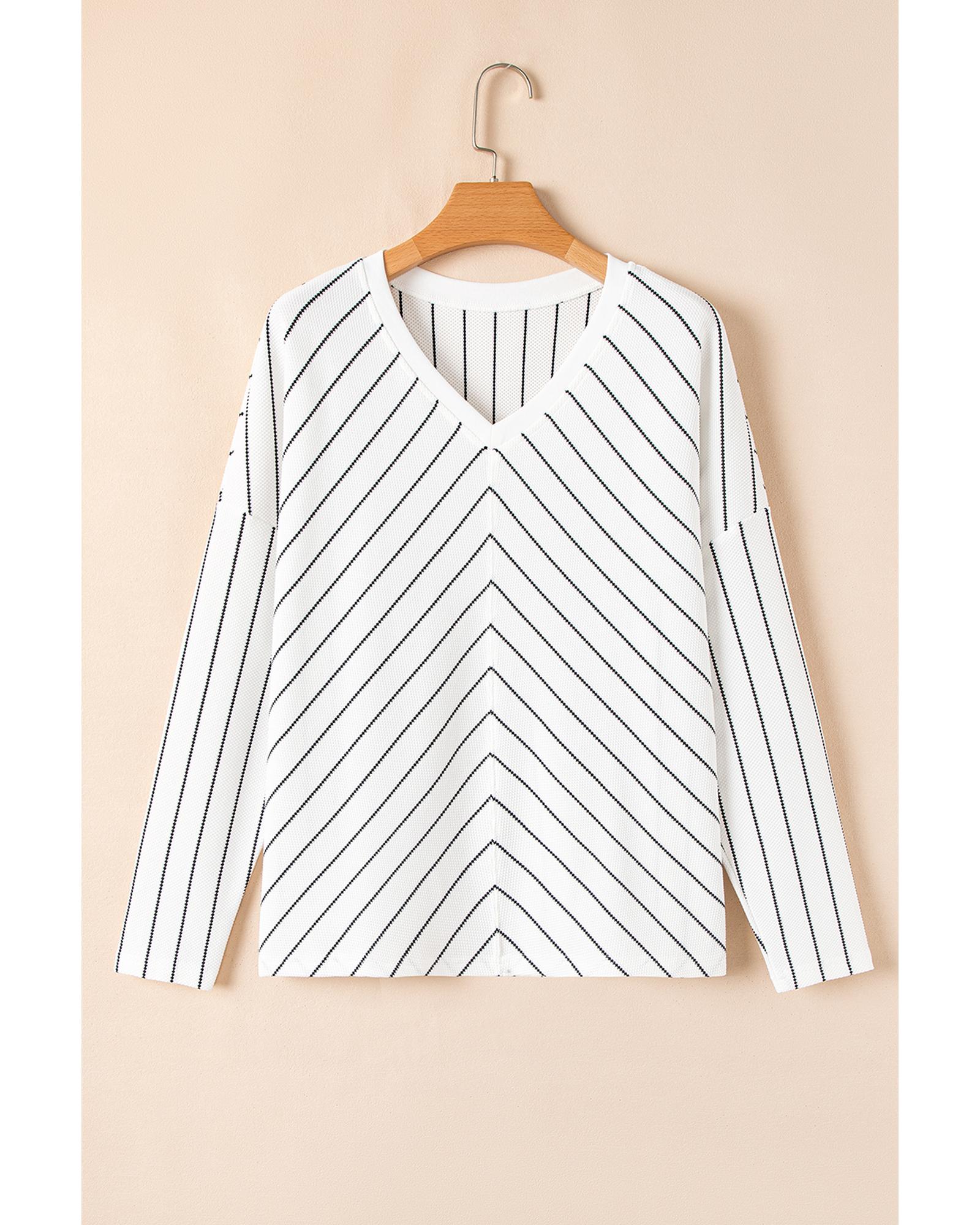 This casual top features a stylish black stripe chevron design, perfect for adding a trendy touch to your wardrobe. With its V-neck and long sleeves, it offers both comfort and versatility for various occasions.