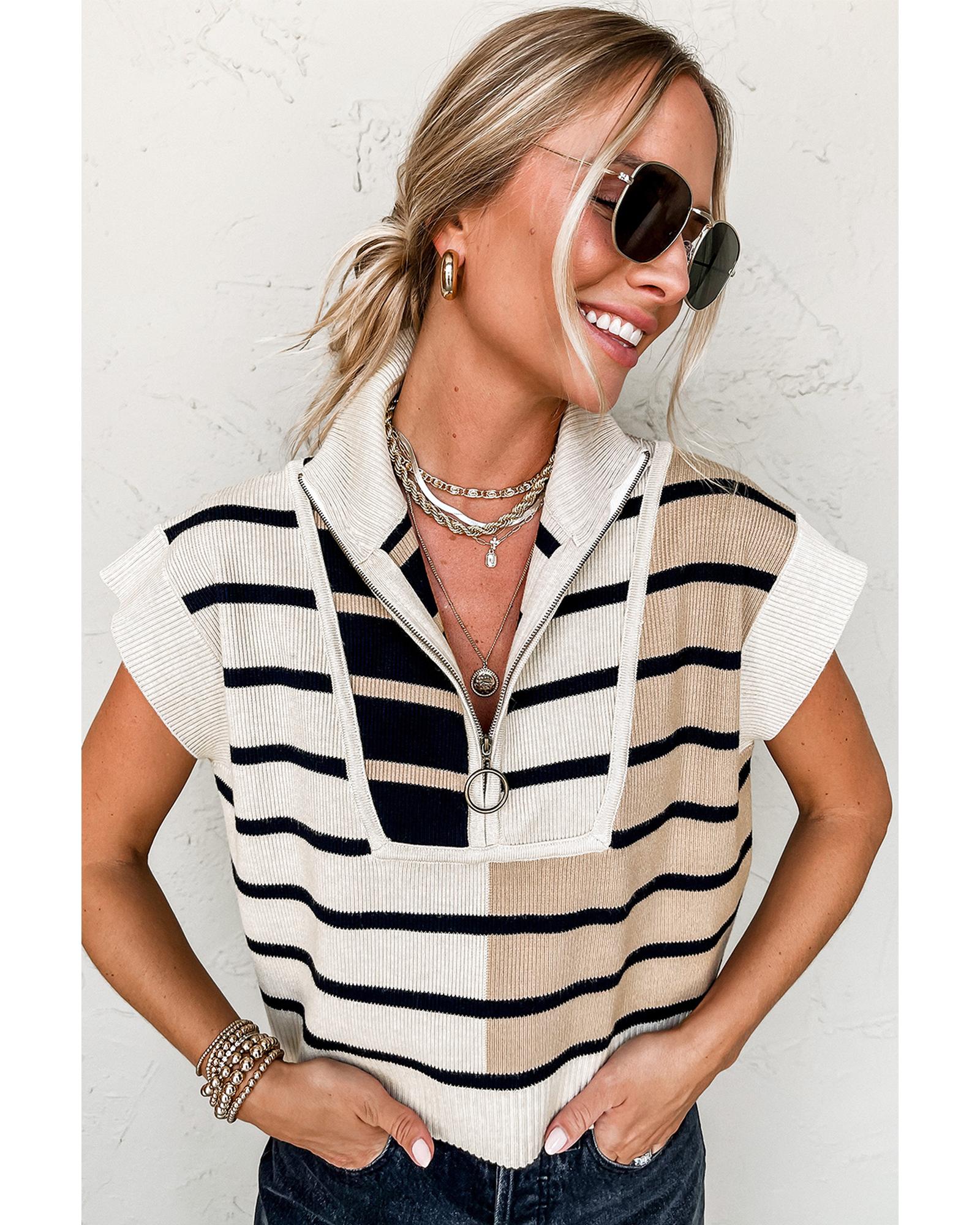 Black Stripe Colorblock Quarter Zip Collar Sweater Vest – M