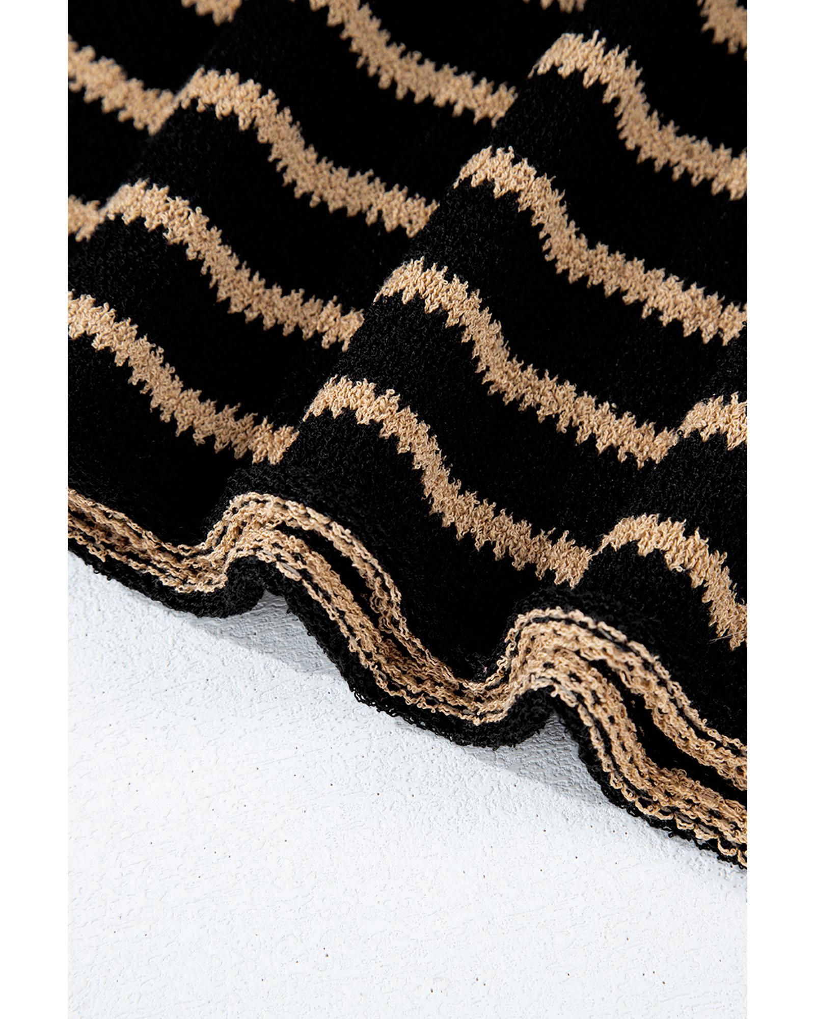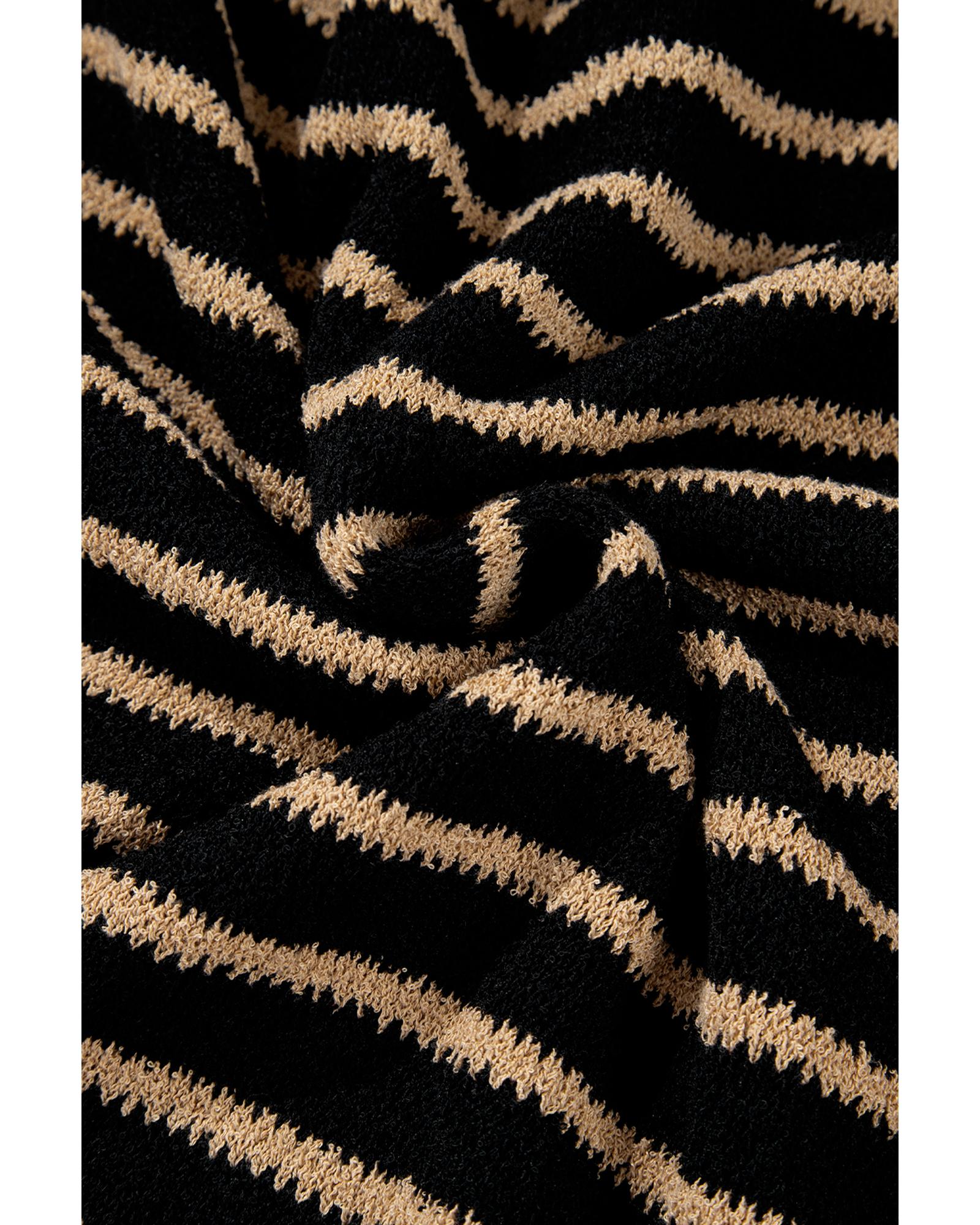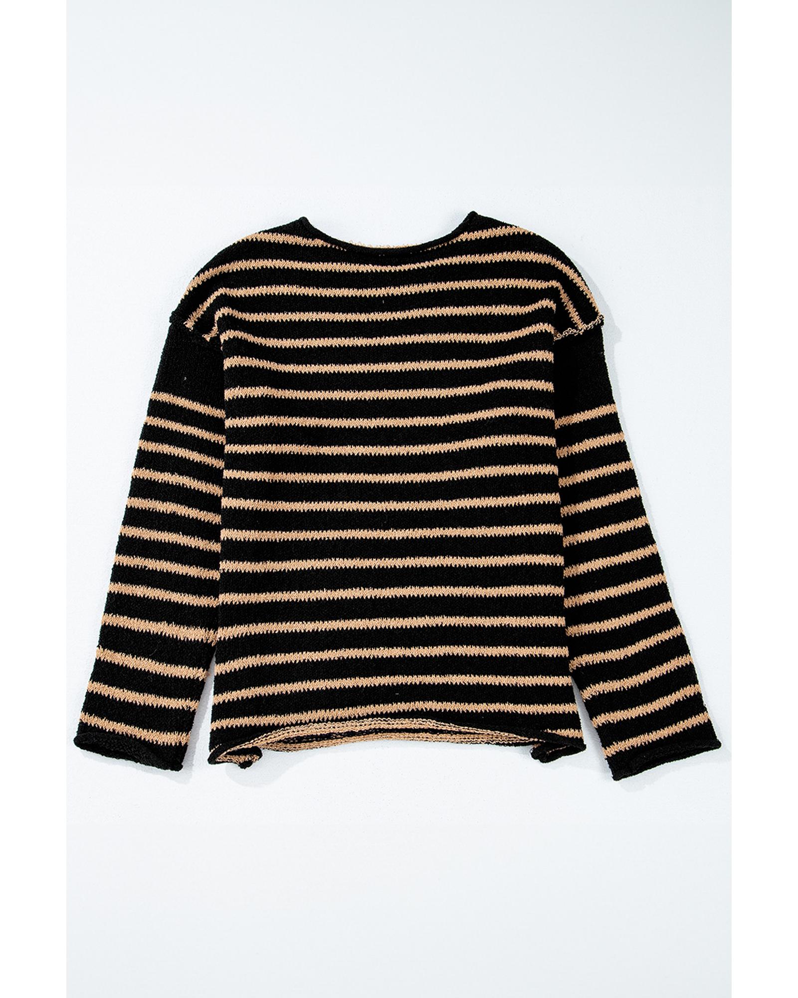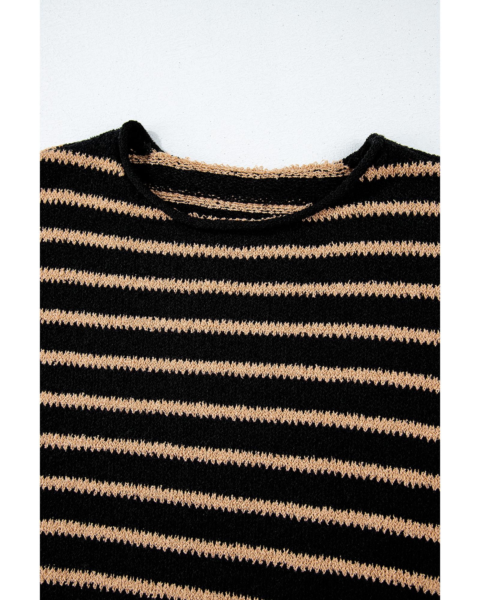 Black Stripe Drop Shoulder Round Neck Loose Sweater – S