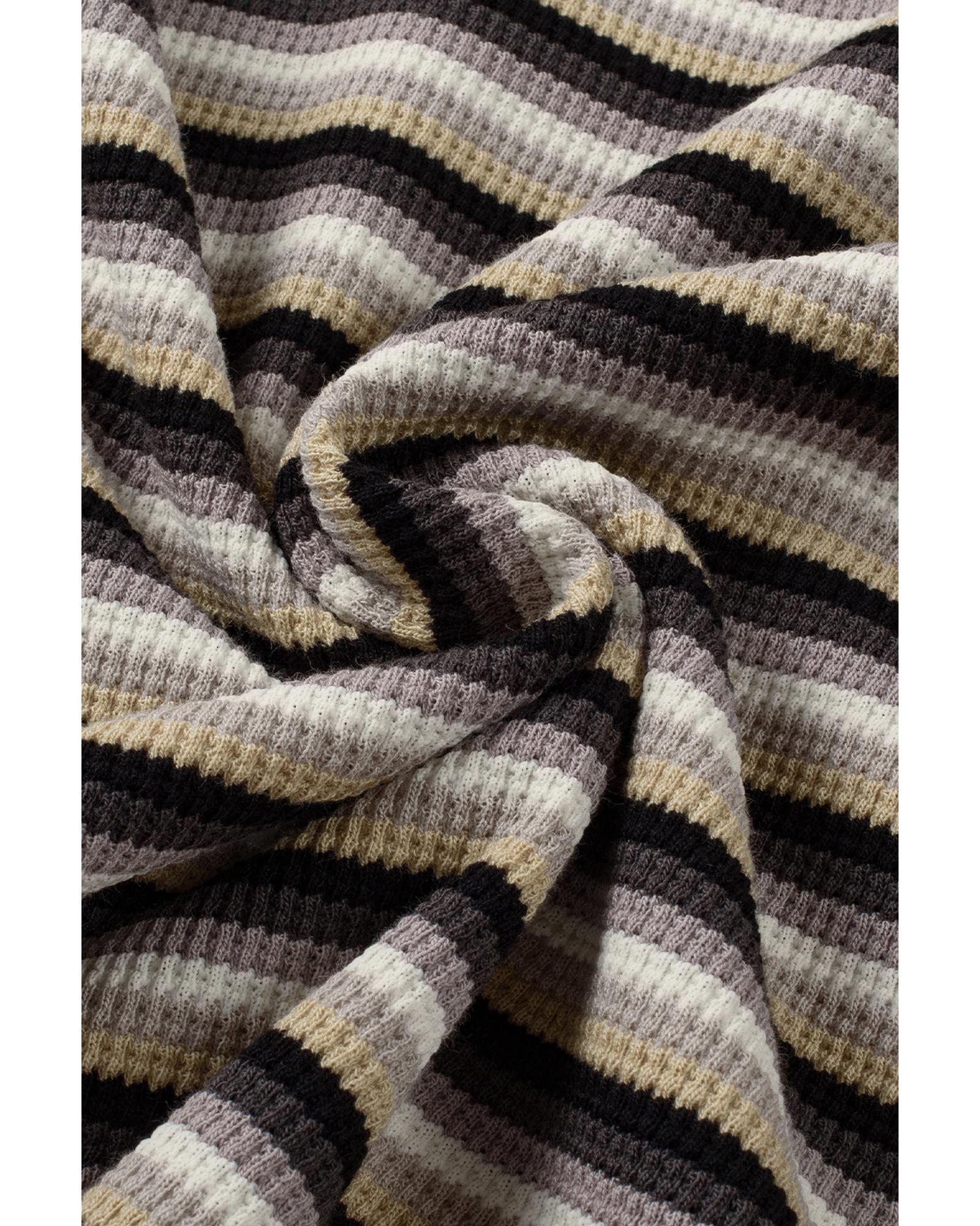 Black Stripe Rainbow Tee Tasseled String Wide Leg Pants Set – L
