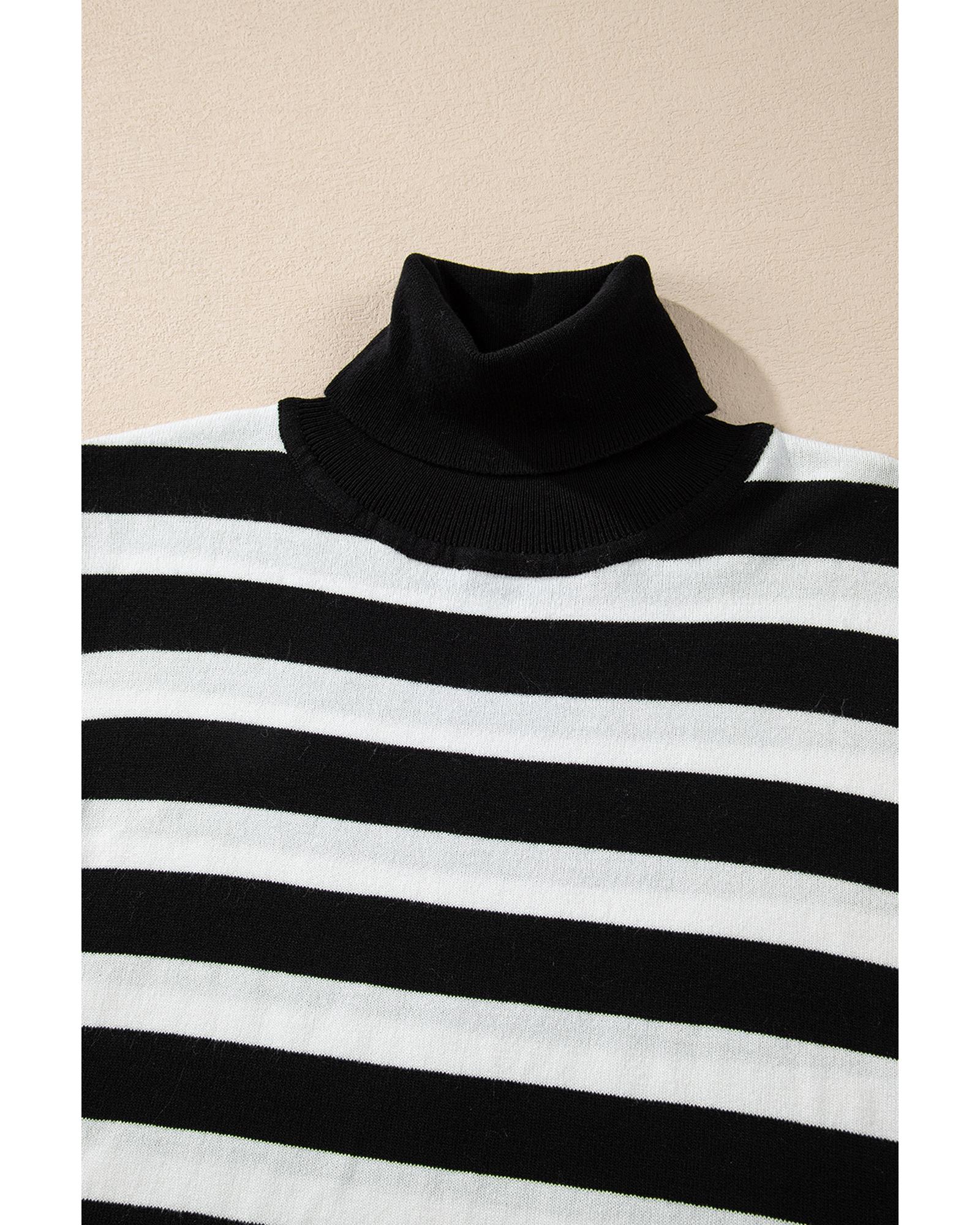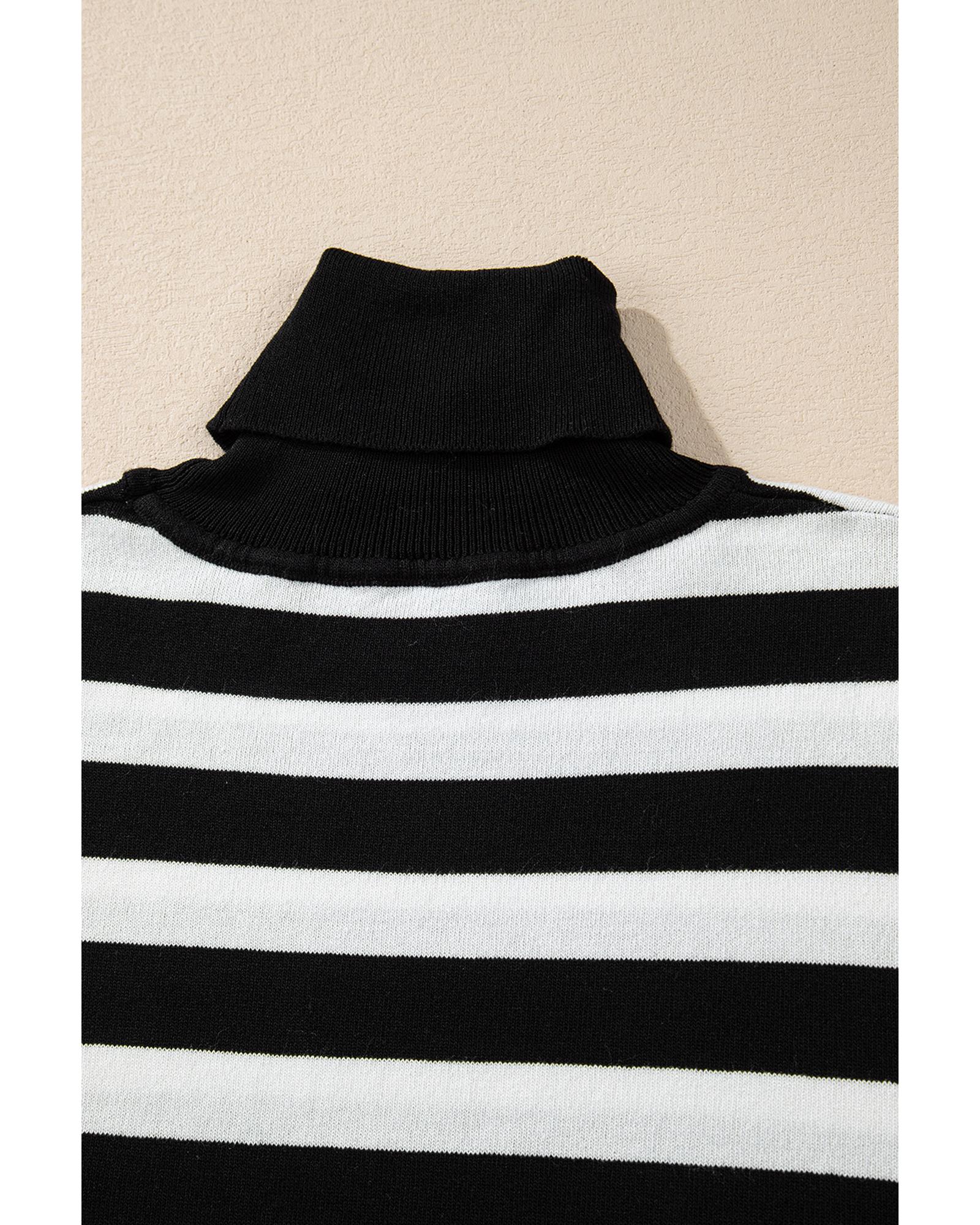 Black Stripe Slim Fit High Neck Knit Sweater – M