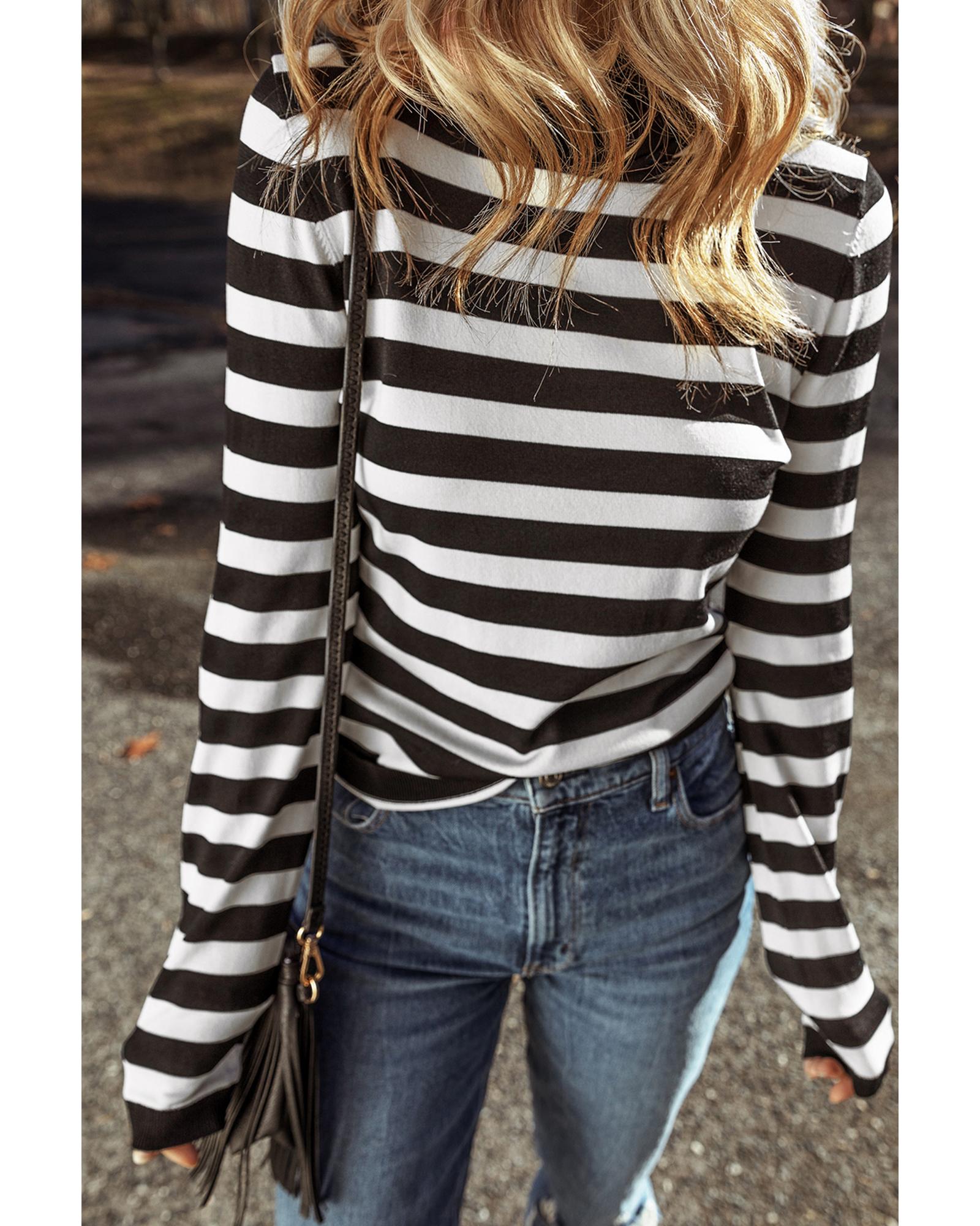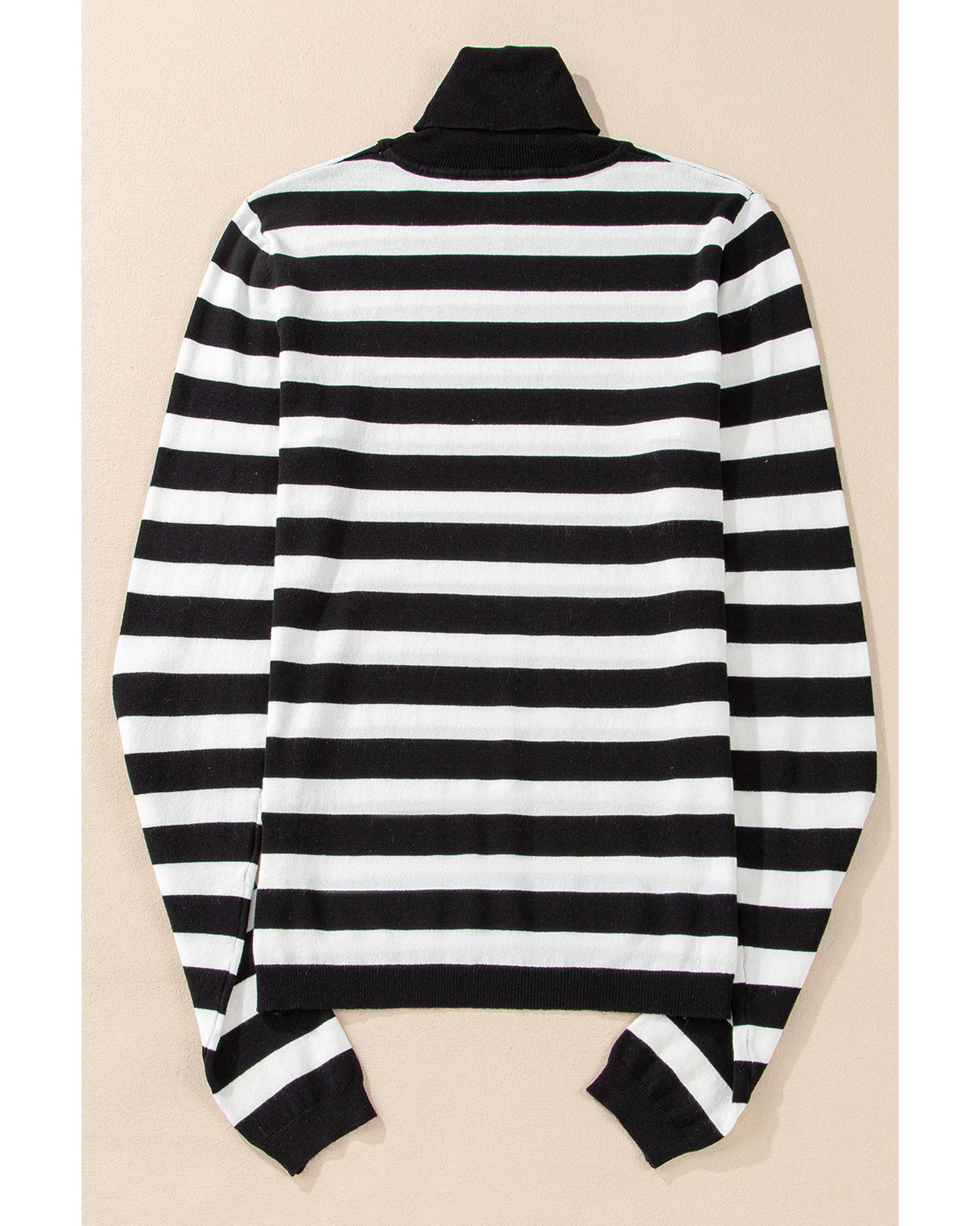 Black Stripe Slim Fit High Neck Knit Sweater – XL