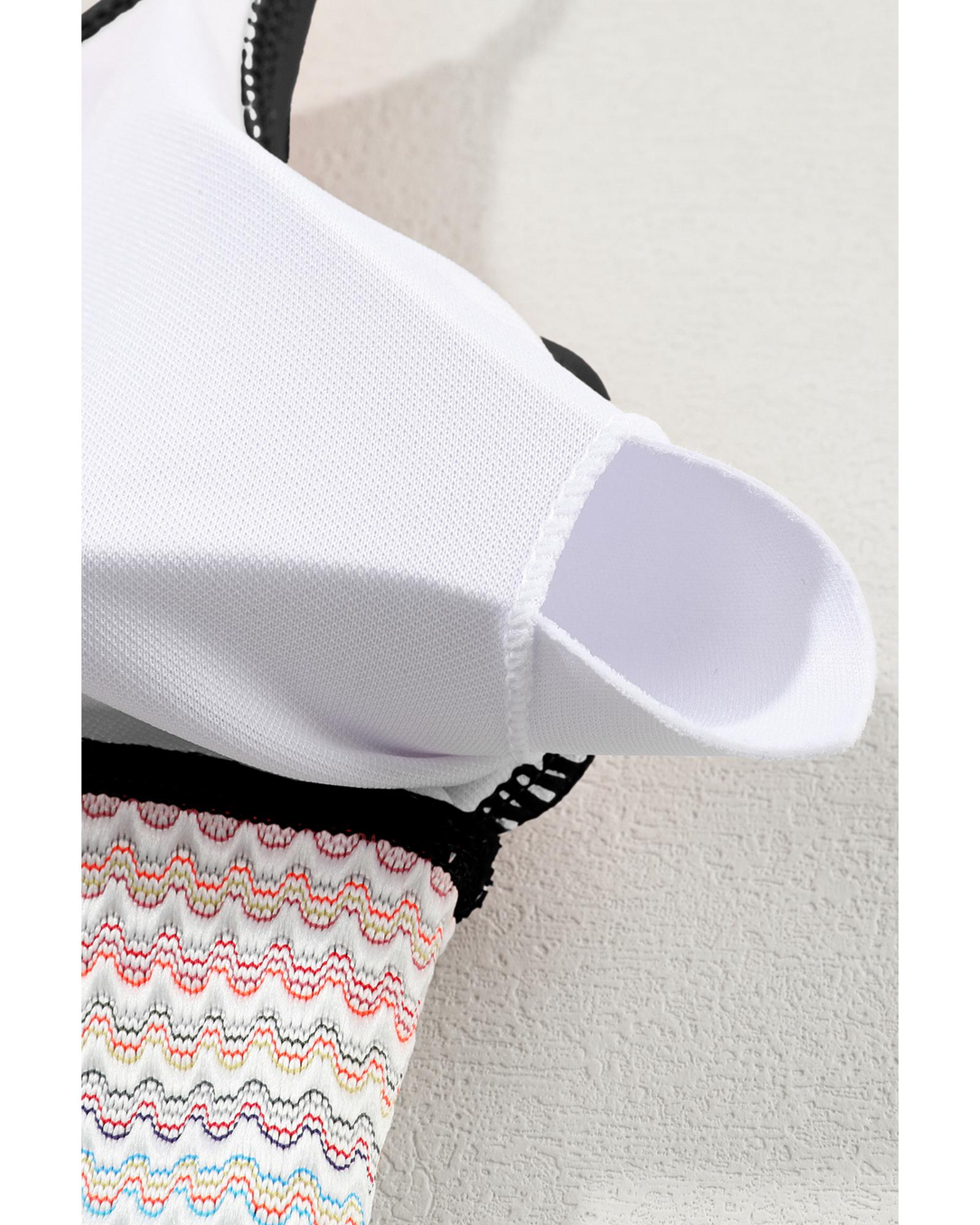 - Black striped patchwork pattern with spaghetti straps and high waist design