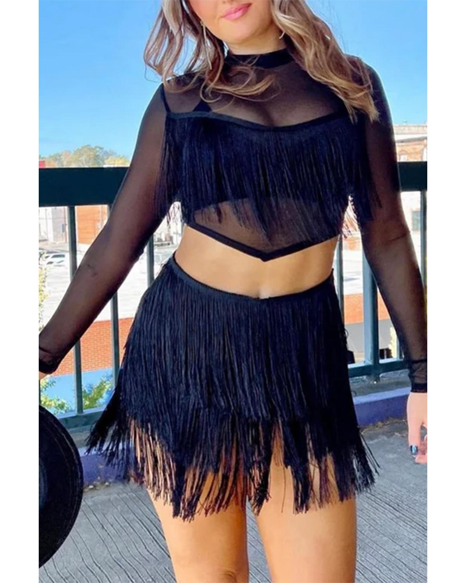 Black Tiered Fringe Trimmed Mini Skirt – XL