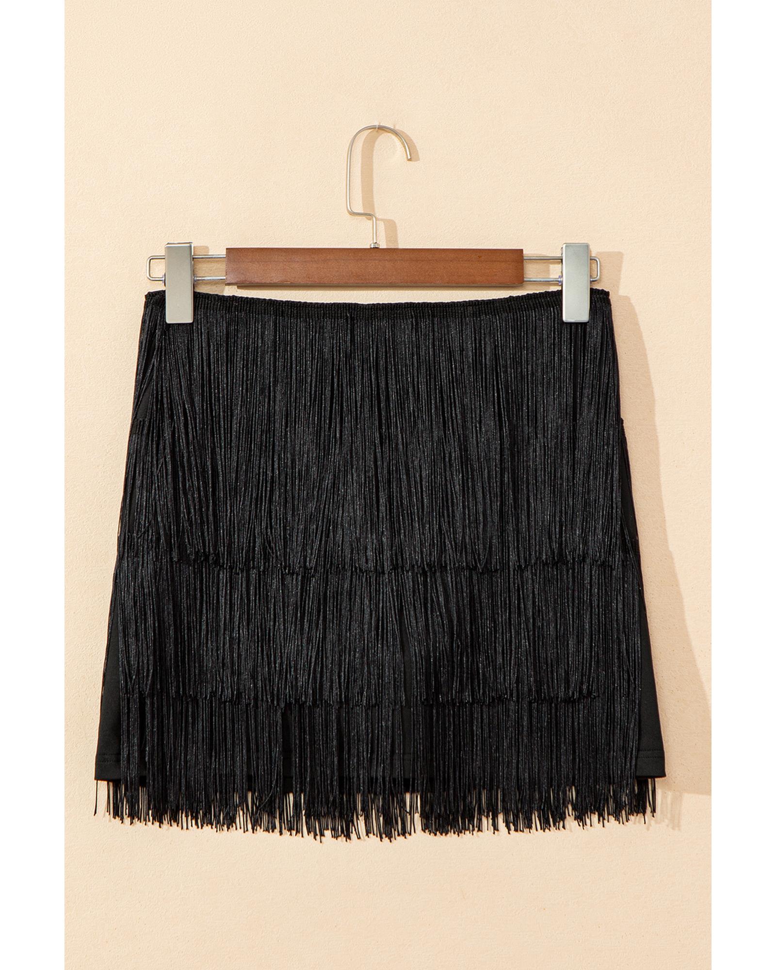 • Effortlessly chic mini skirt with a tiered fringe silhouette