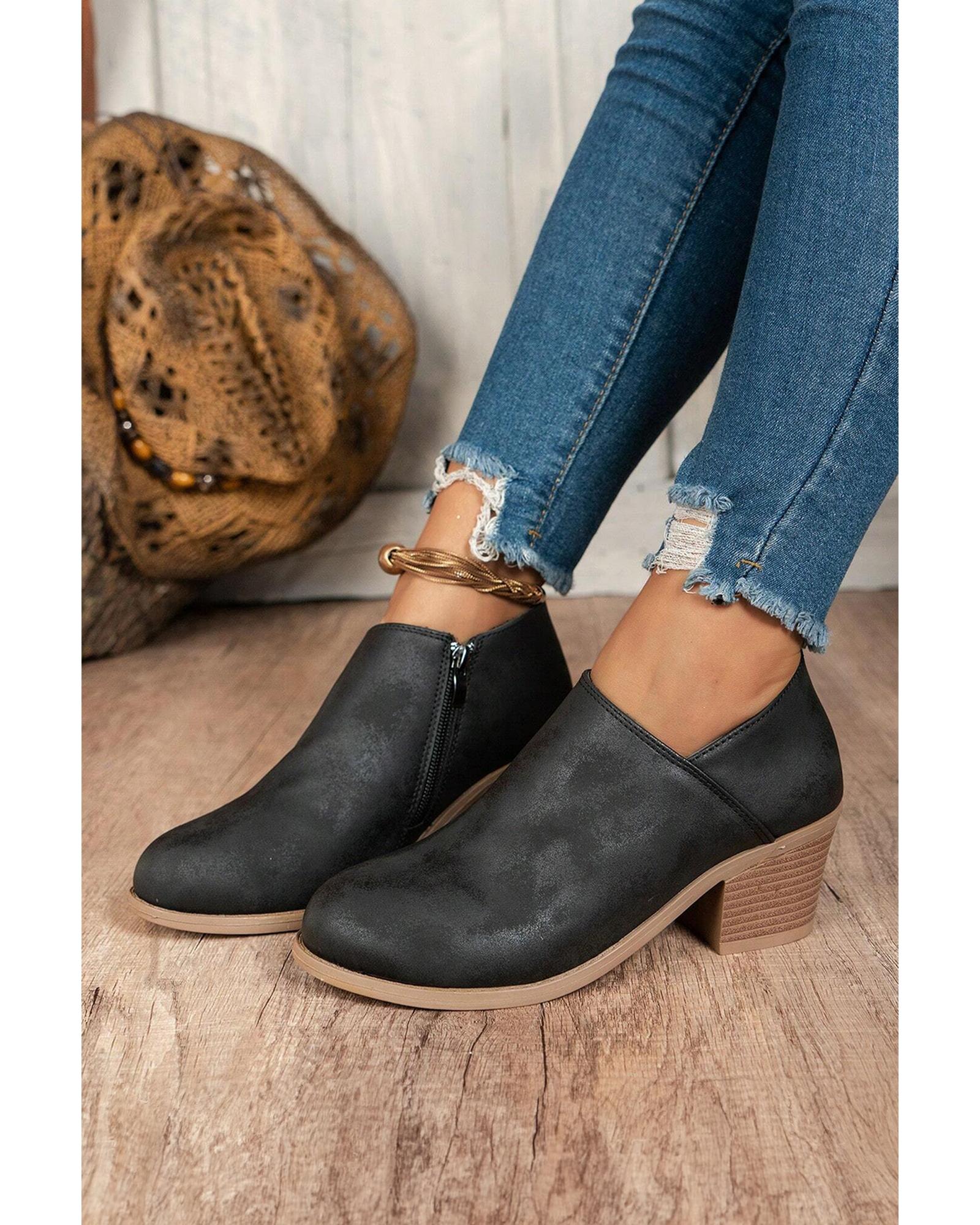 These stylish ankle boots feature a trendy tulip opening design, combining comfort and fashion. Crafted from quality suede PU leather and TPR materials, they are suitable for various daily outfits. The side zipper allows for easy wearing and removal, making them a practical choice for everyday wear.