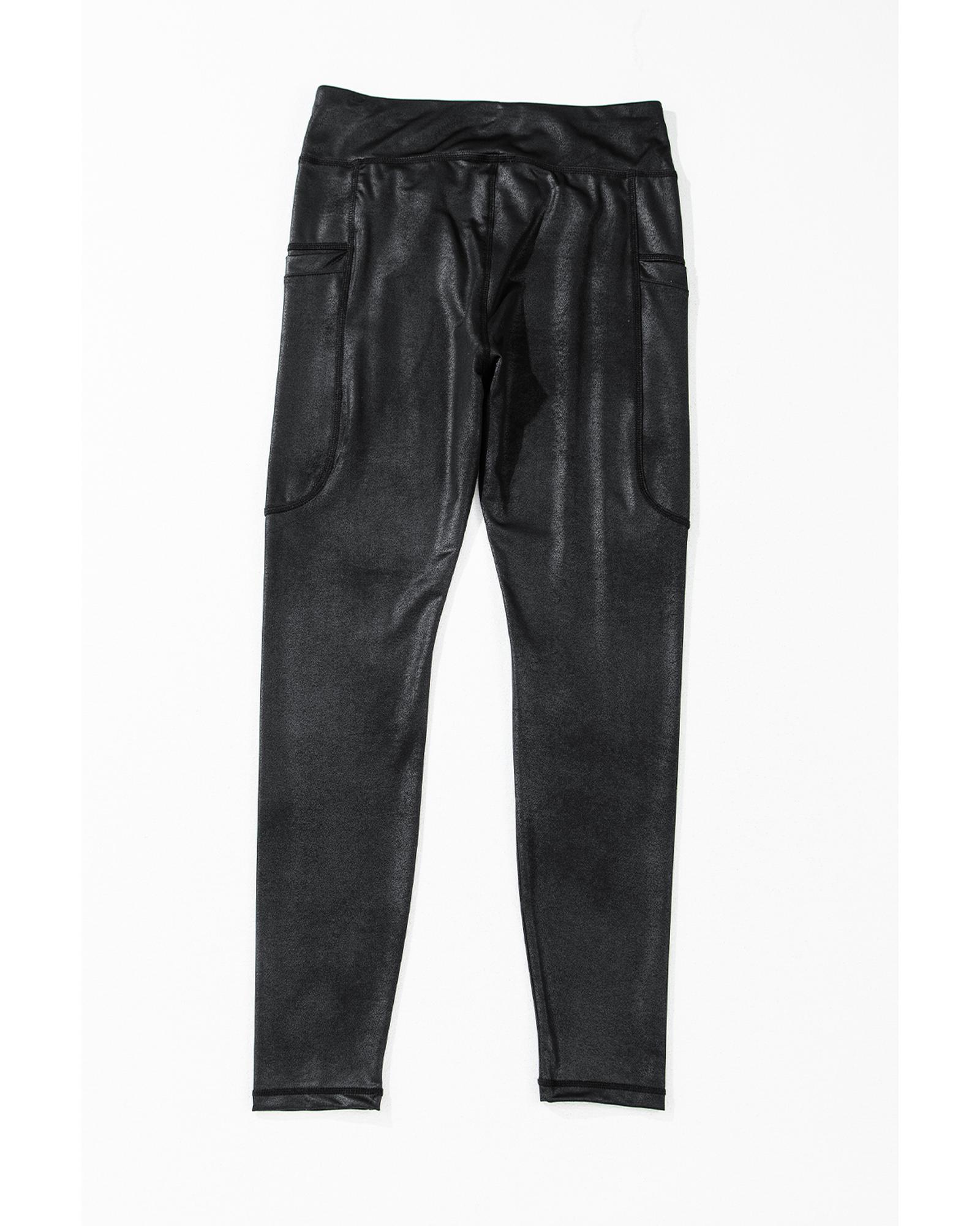 These high waist pocketed leggings feature a stylish V crossover design and a versatile solid black color, making them suitable for both casual and active wear. Designed with comfort and fashion in mind, they offer a trendy fitted look that complements various outfits.