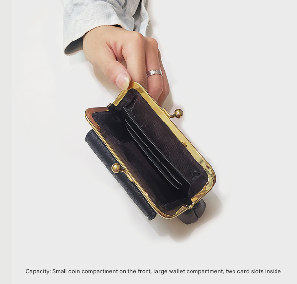 This vintage-style women’s coin purse combines timeless elegance with practical functionality. Featuring a classic kiss-lock clasp and a textured pebbled surface, it offers a stylish way to organize your essentials while maintaining a retro-inspired look. Its compact size makes it suitable for daily use and easy to carry anywhere.