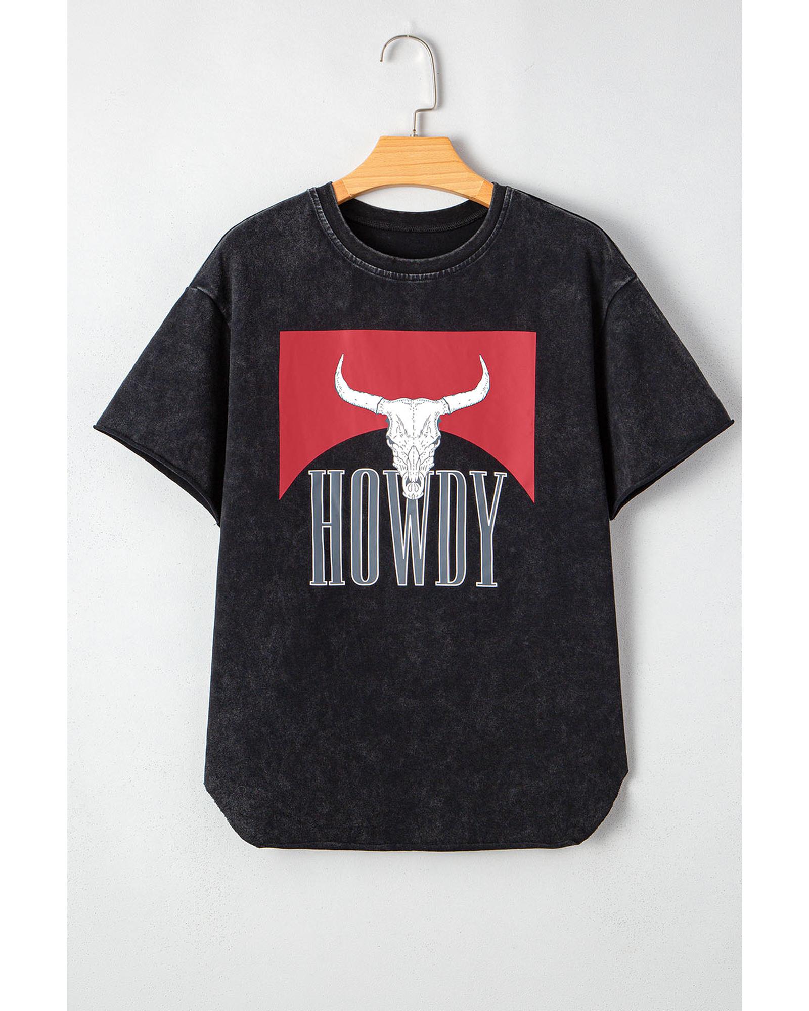 Black Western HOWDY Steer Head Print Side Slits Loose Fit T Shirt – XL