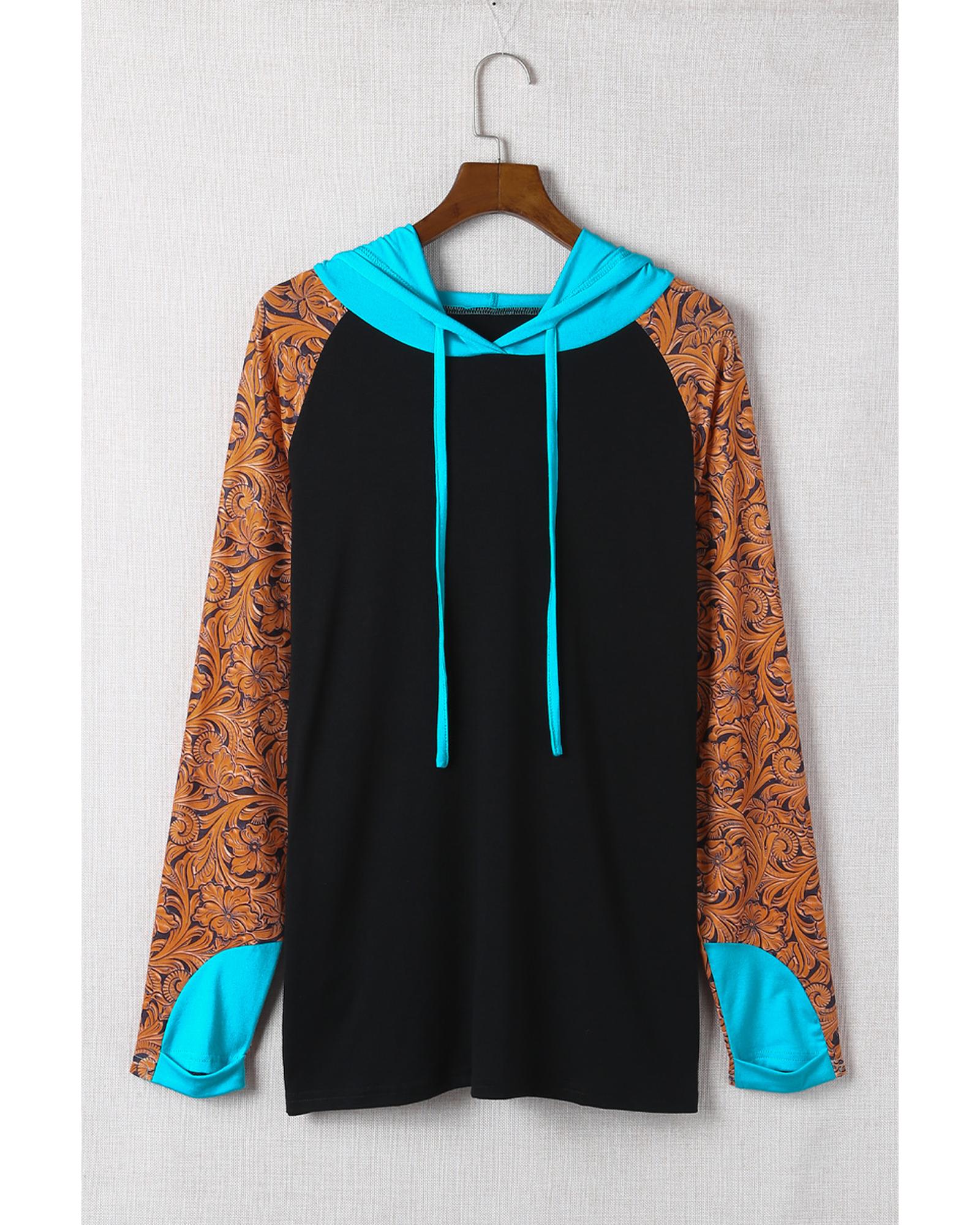 Black Western Print Color Block Plus Size Hoodie – 2X