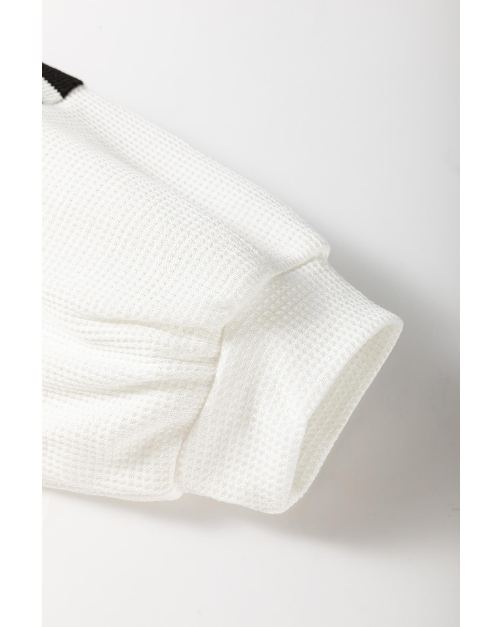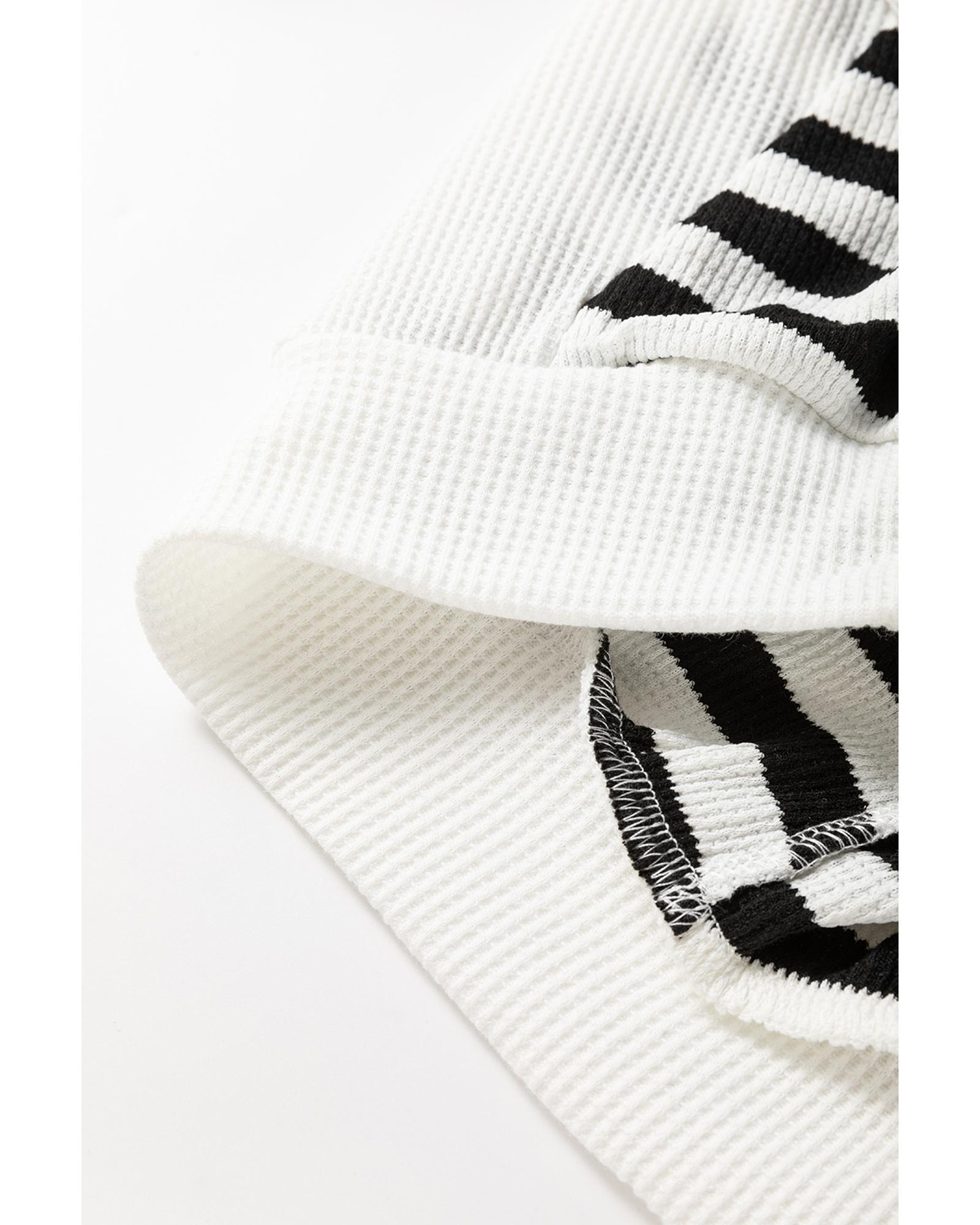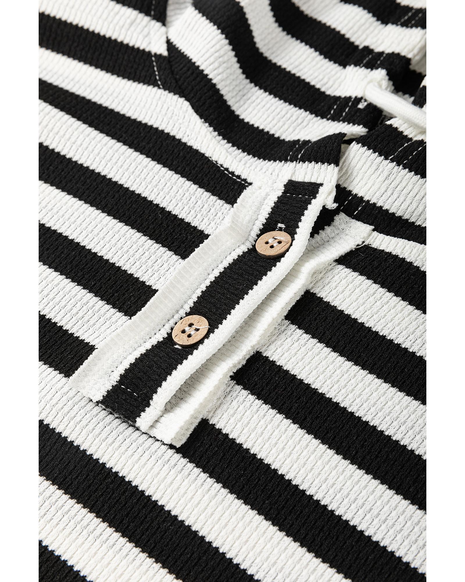 Black white Oversized Striped Henley Buttons Dolman Sleeve Hooded Top – M