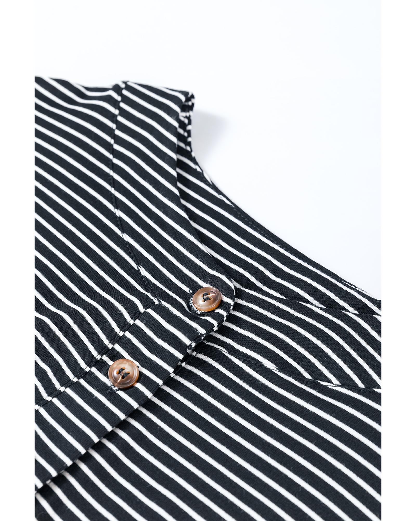 Black white Striped Print Buttoned Wide Leg Sleeveless Jumpsuit – S