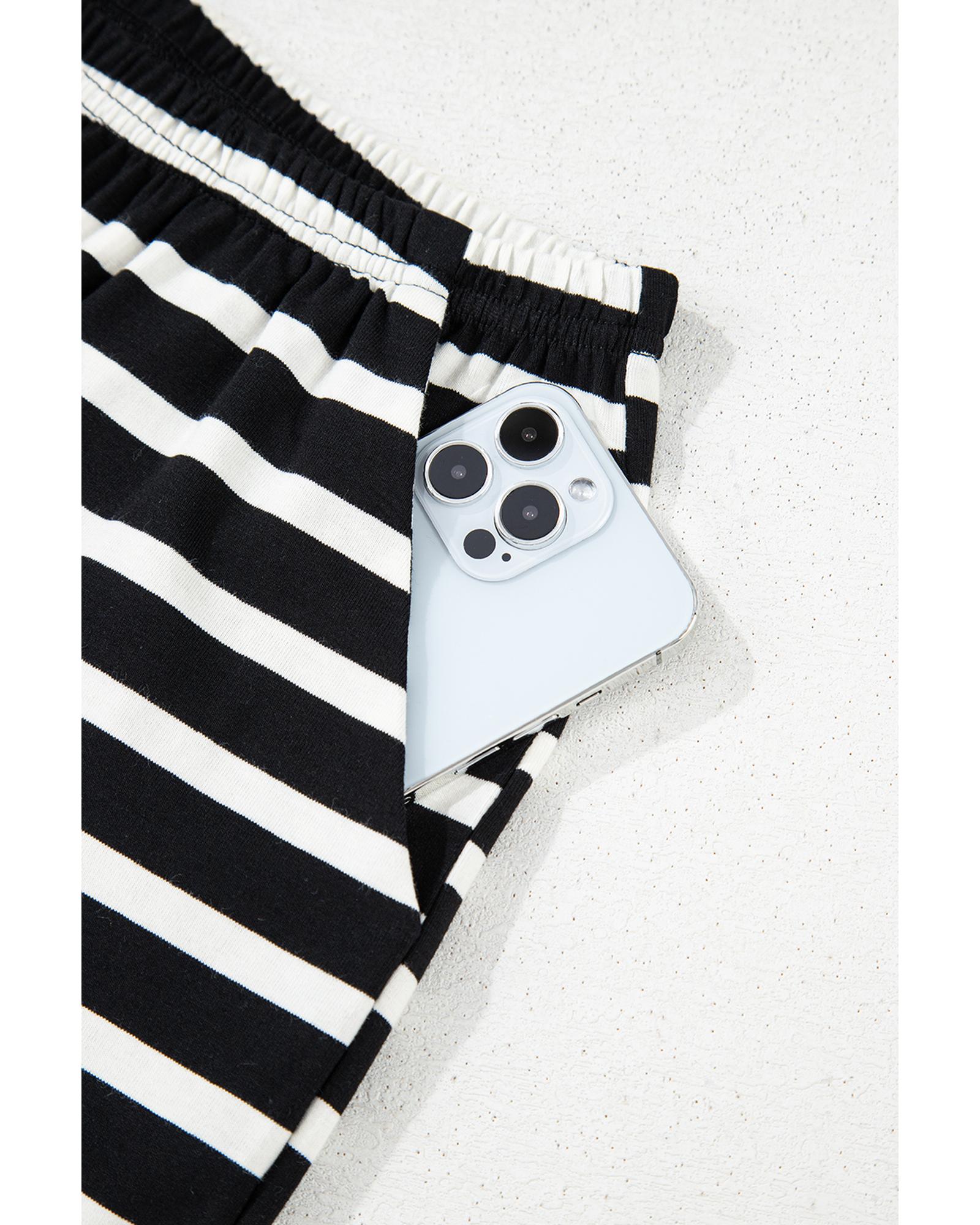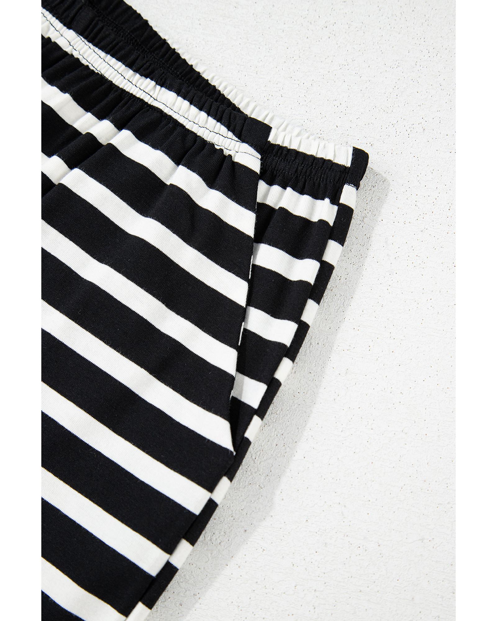 Black White Striped Short Sleeve Top and Shorts Set – XL
