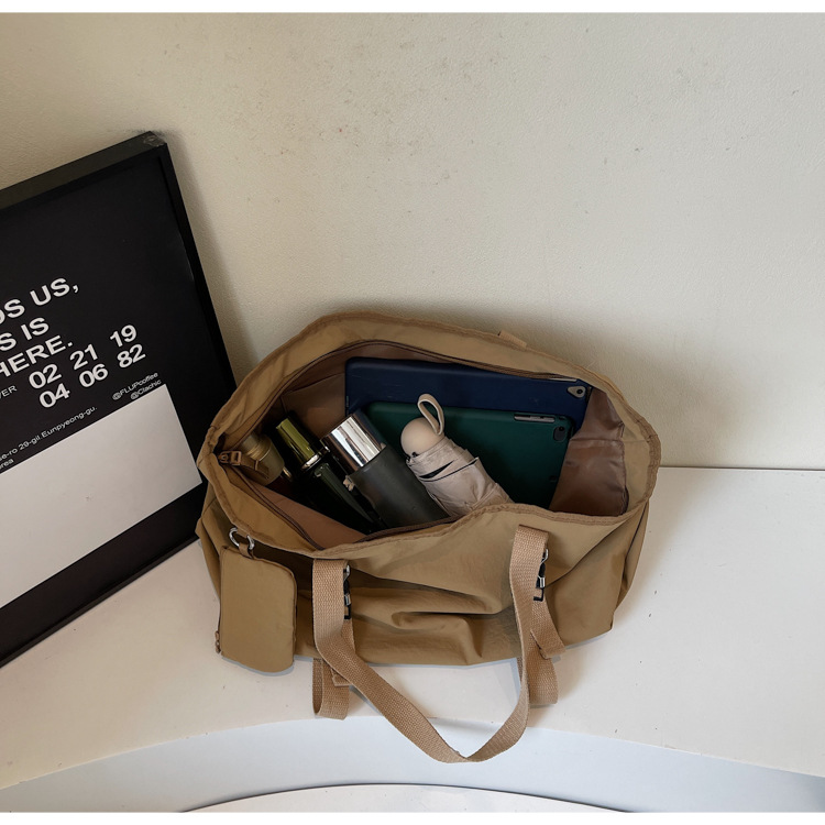 This large capacity nylon tote bag combines style and practicality, making it suitable for various daily activities. Its spacious interior and organized compartments provide ample space for essentials, while the lightweight design ensures comfortable carrying. The versatile carrying options and fashionable appearance make it an ideal choice for work, school, or casual outings.