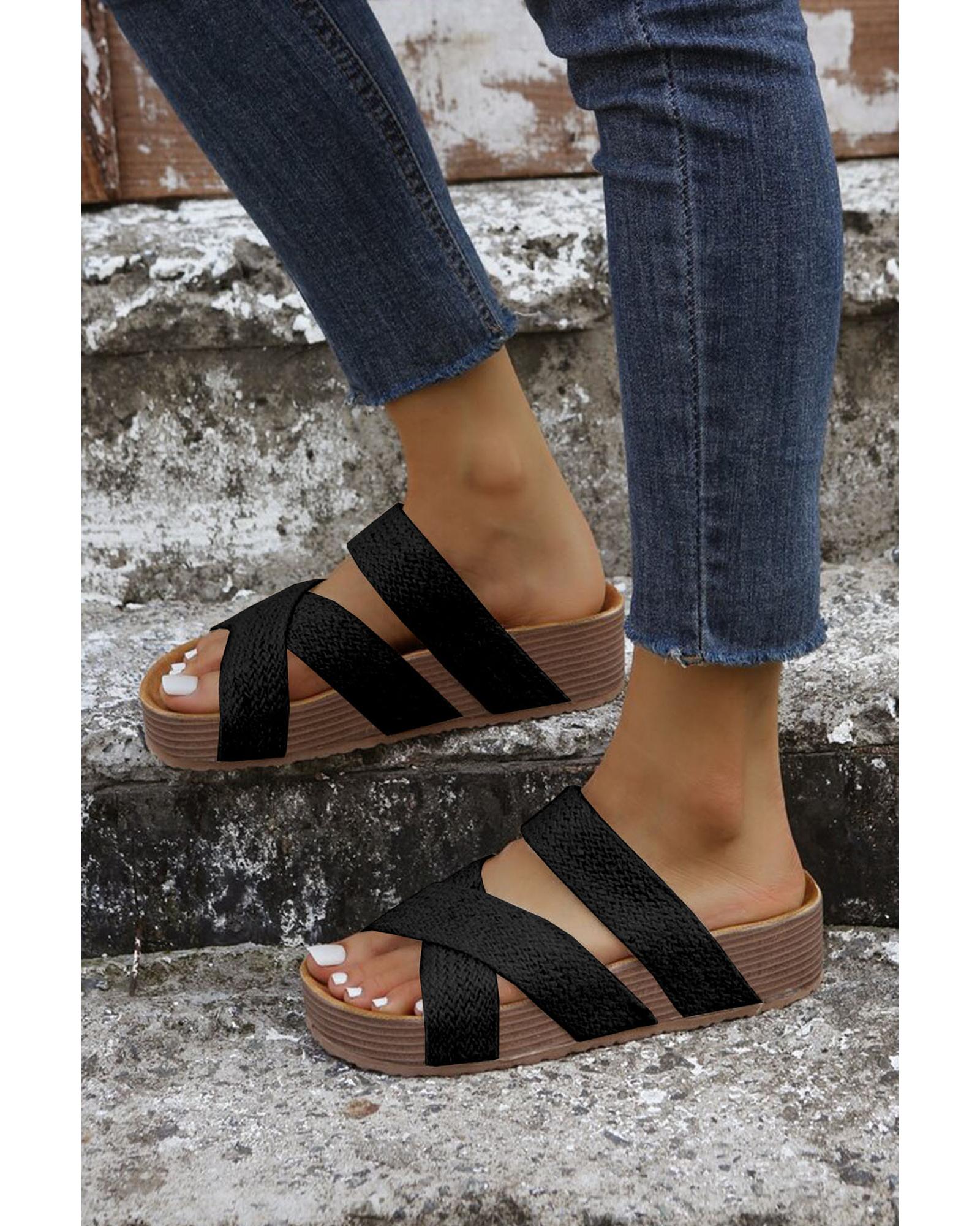Black Woven Cross Criss Hollowed Slip-On Slippers – 40 EU