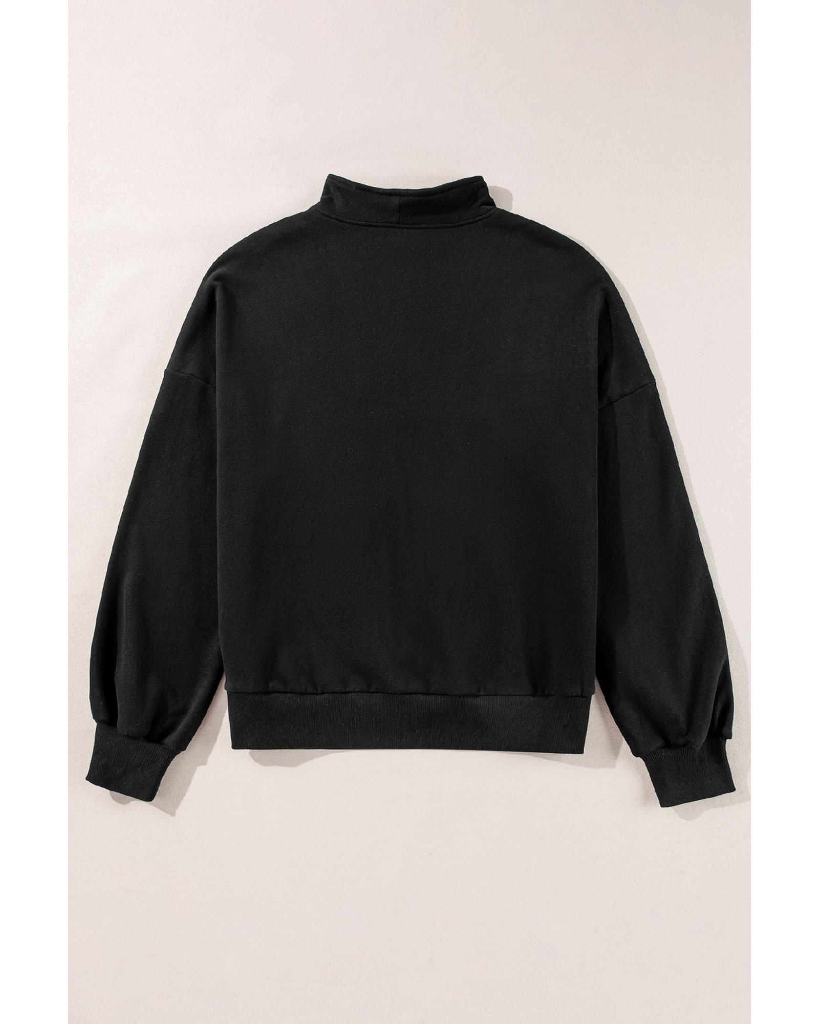 This black zip-up sweatshirt features a stand-up collar and a kangaroo pocket, offering a casual and stylish look. Designed with a trendy fitted silhouette, it combines comfort and durability for everyday wear.