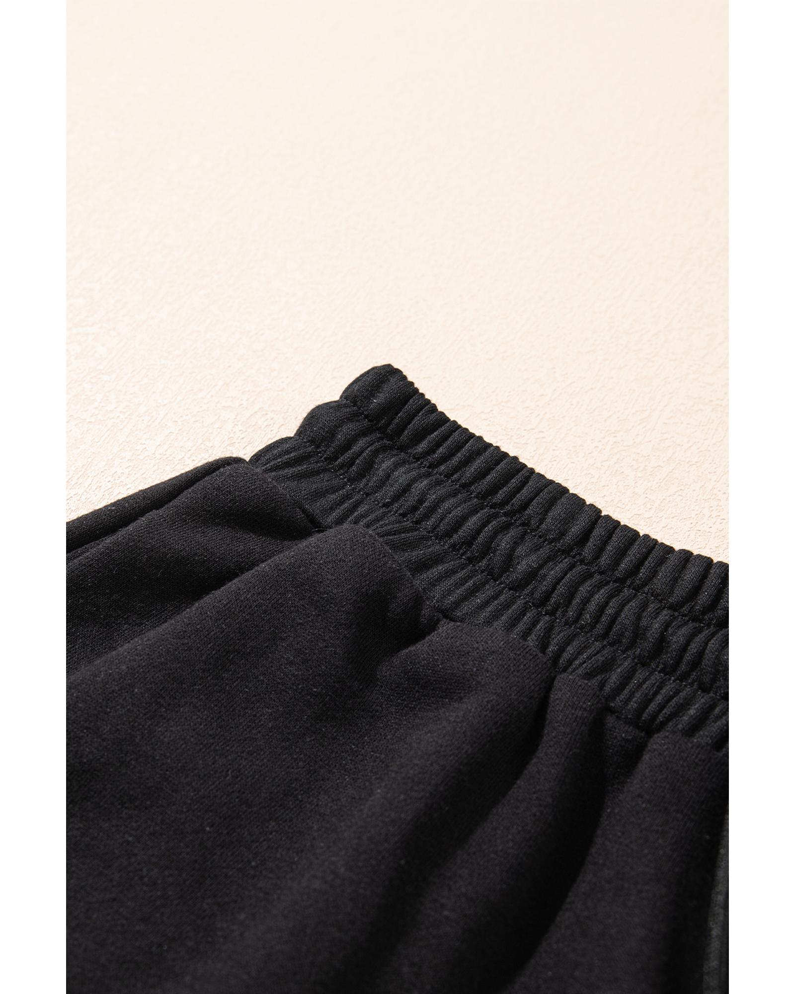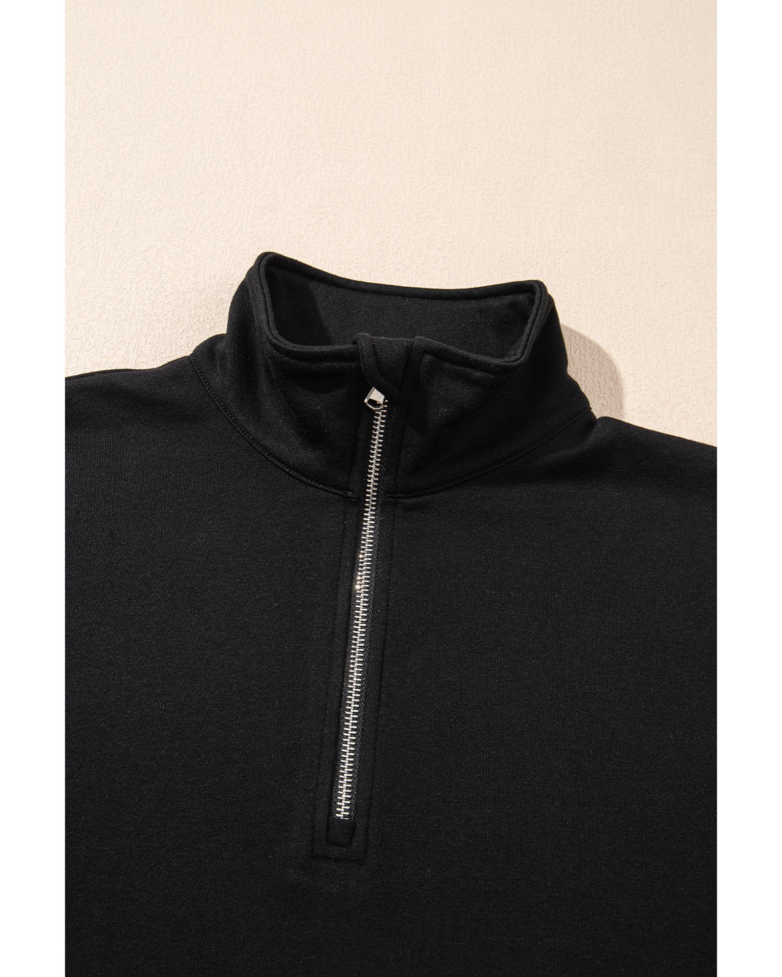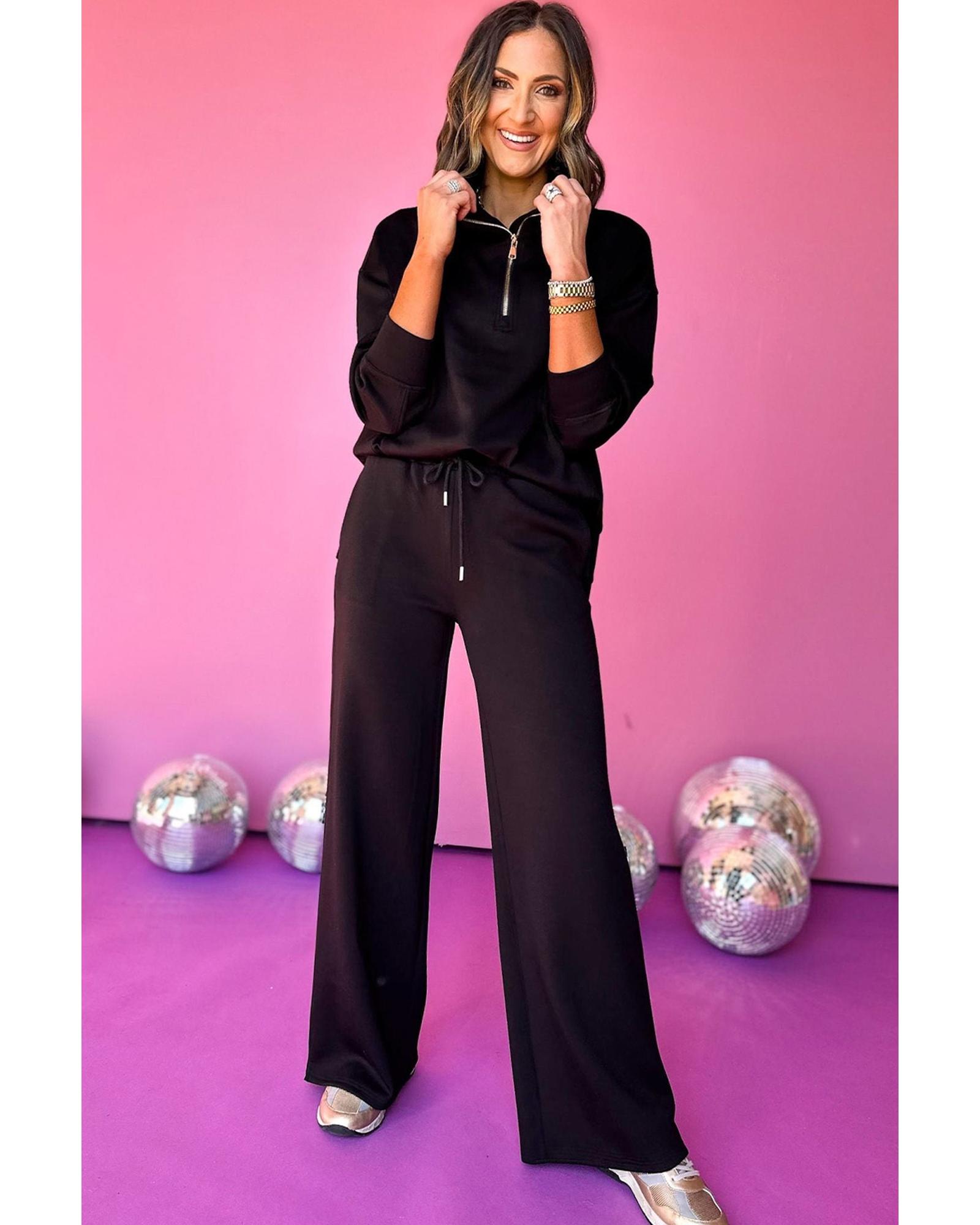 Black Zipper Stand Neck Top and Wide Leg Pants Set – XL