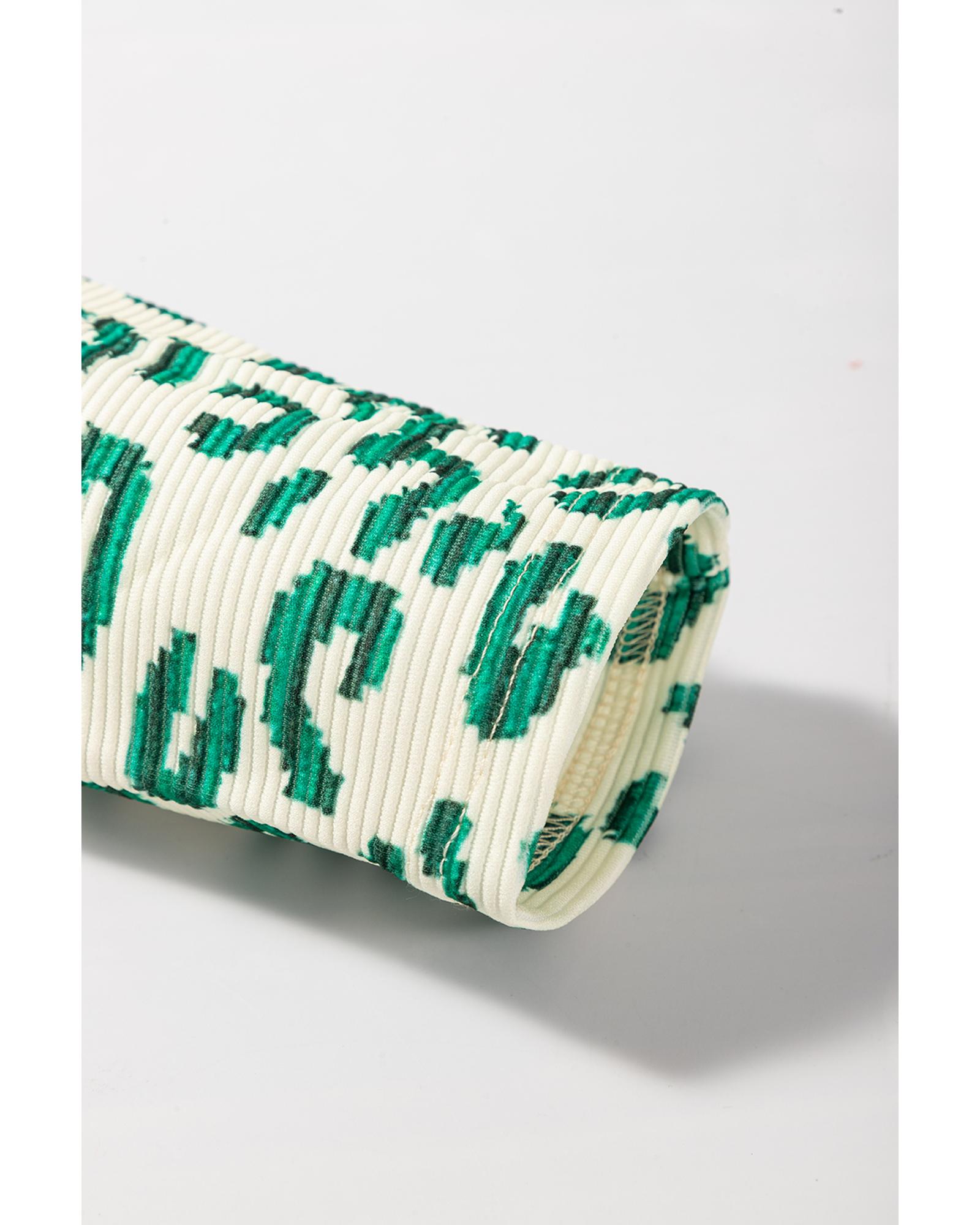Blackish Green Leopard Print Mock Neck Puff Sleeve Top – L
