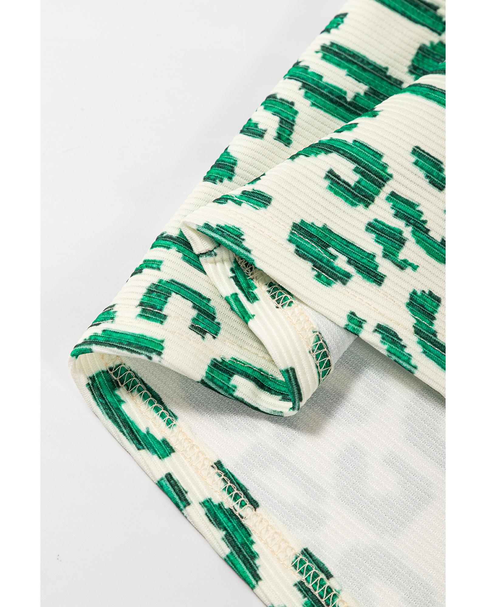 Blackish Green Leopard Print Mock Neck Puff Sleeve Top – M
