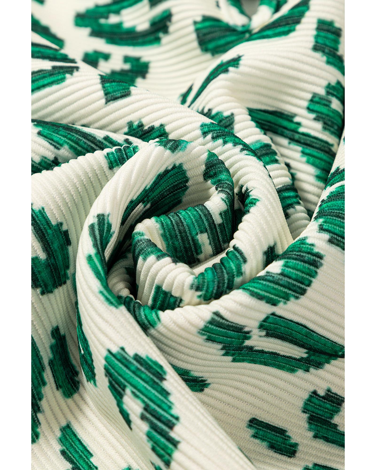 Blackish Green Leopard Print Mock Neck Puff Sleeve Top – XL