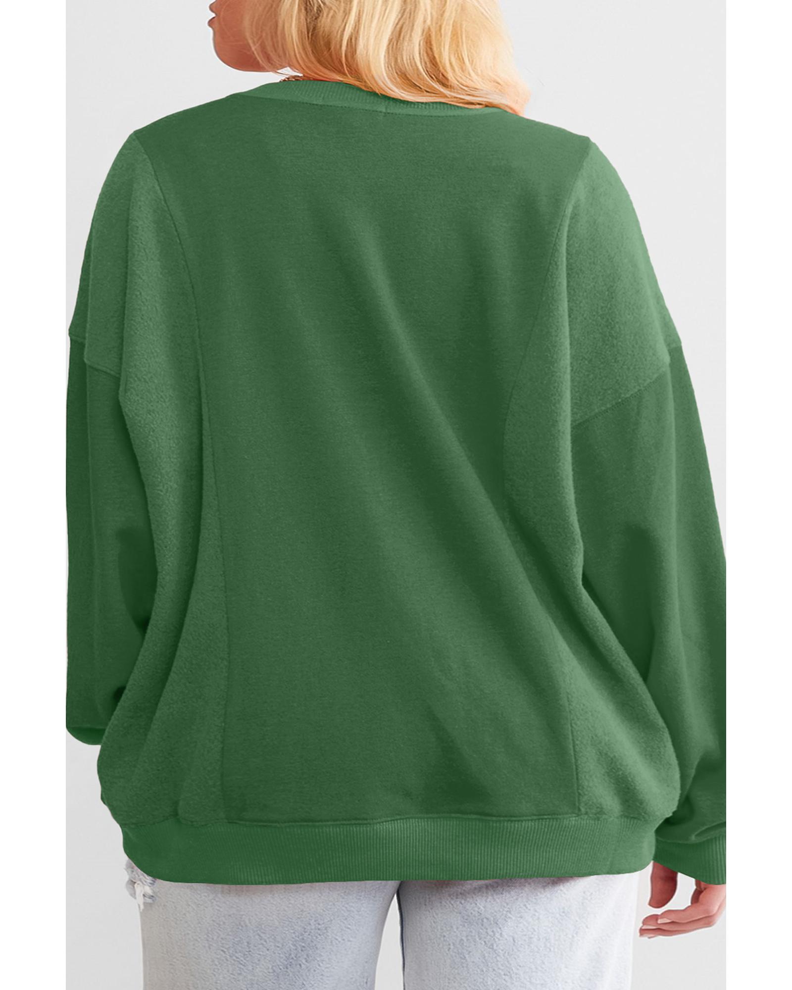 Blackish Green Loose Patchwork Crewneck Plus Size Sweatshirt – 1X