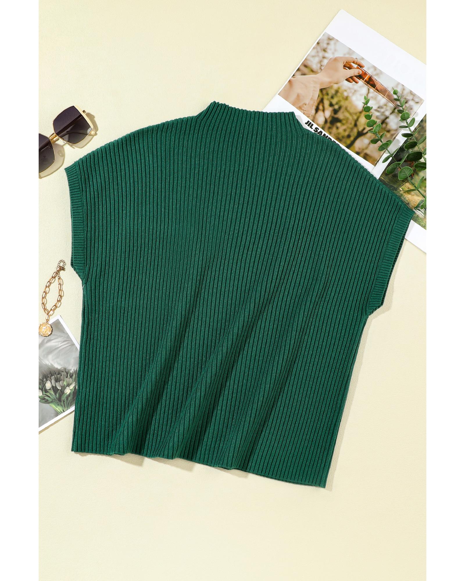Blackish Green Patch Pocket Ribbed Knit Short Sleeve Sweater – M