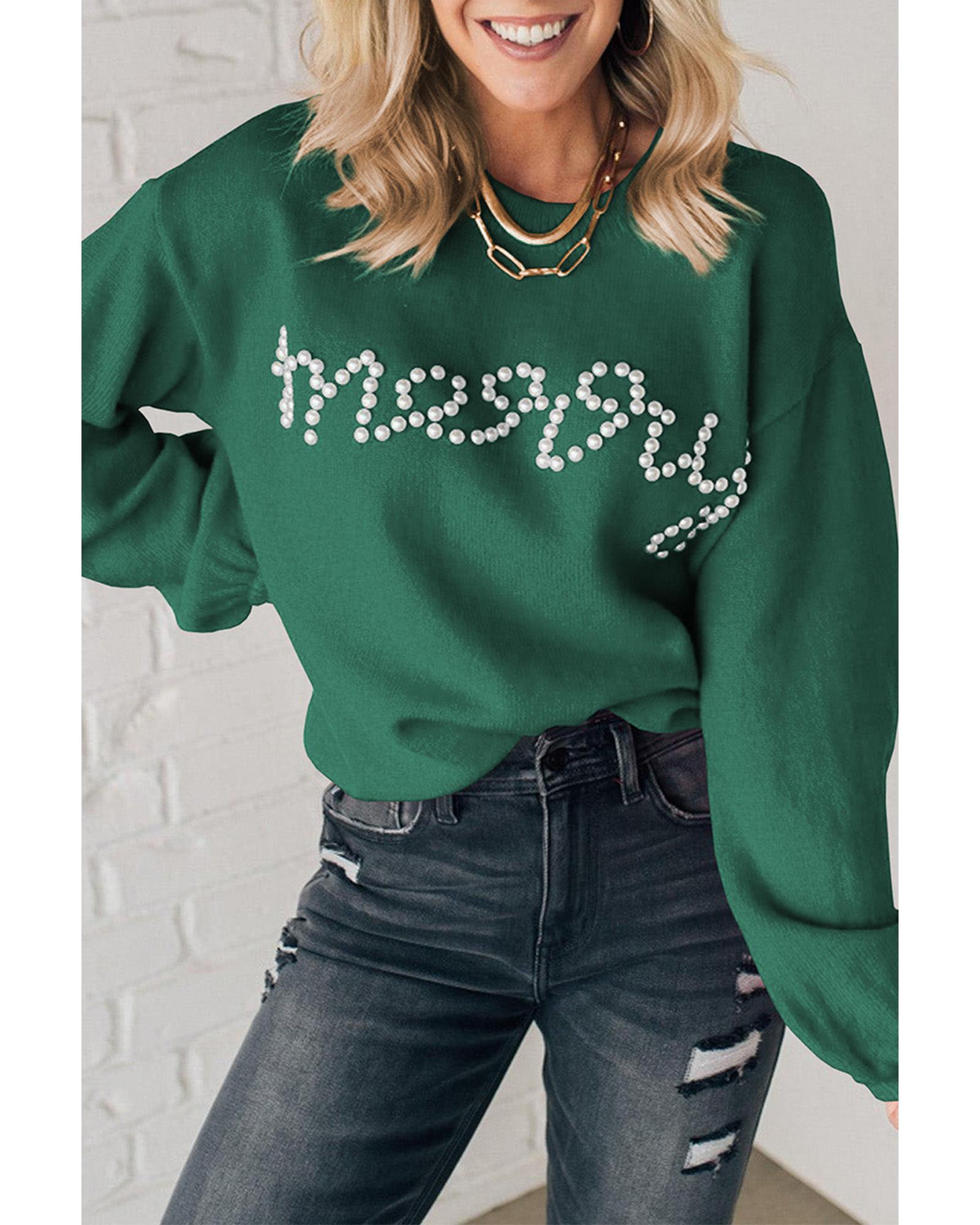 Blackish Green Pearl Beaded Merry Casual Sweater – M