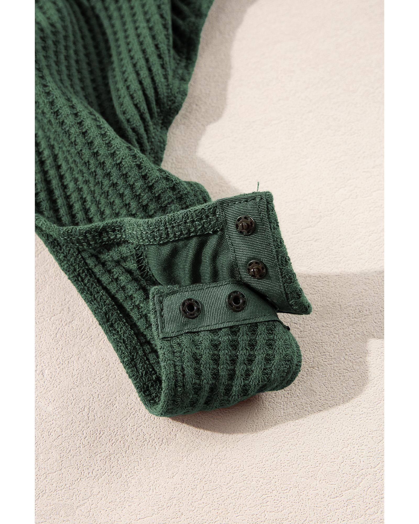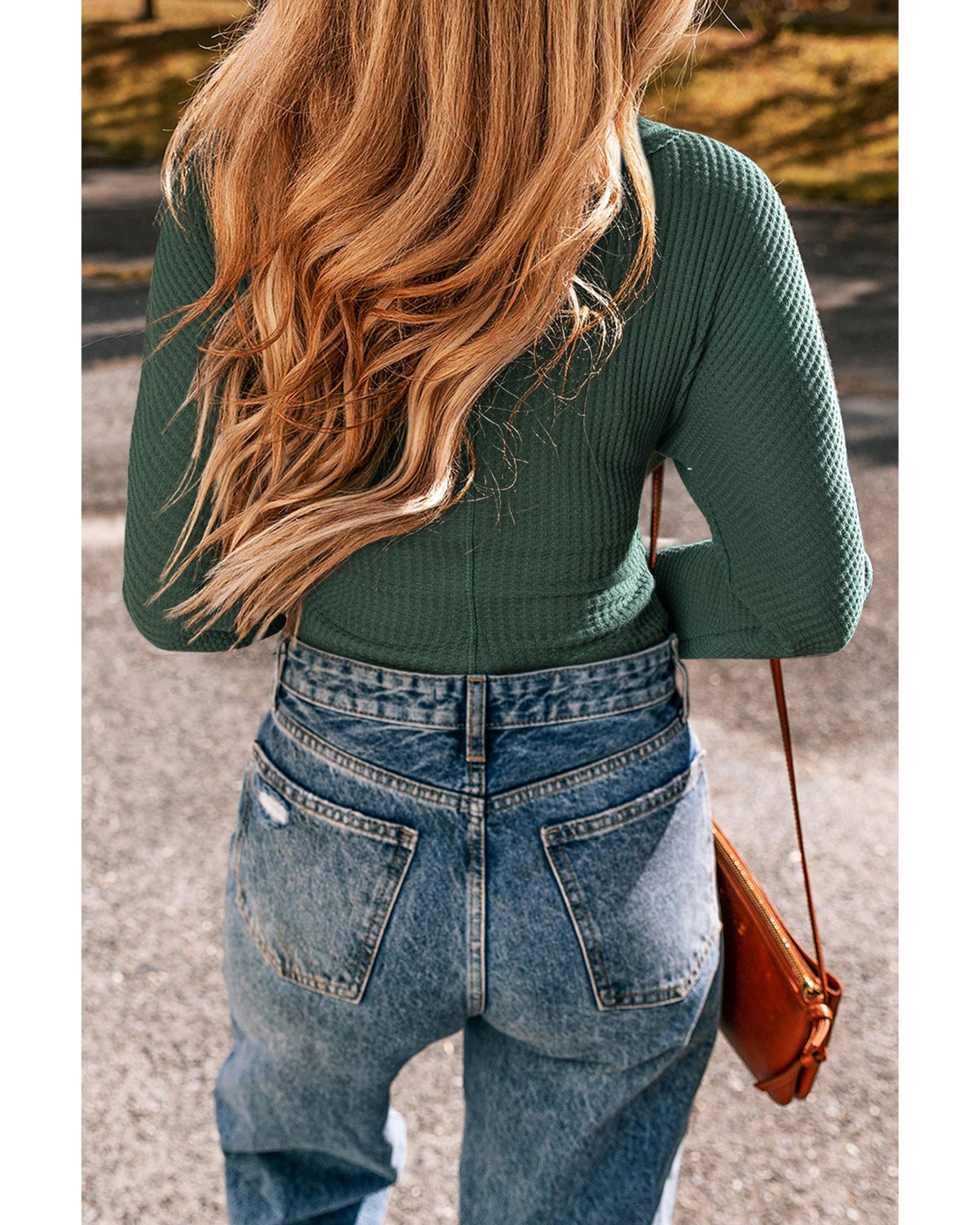 Blackish Green Waffle Knit Slim Fit Wrap V Neck Bodysuit – S
